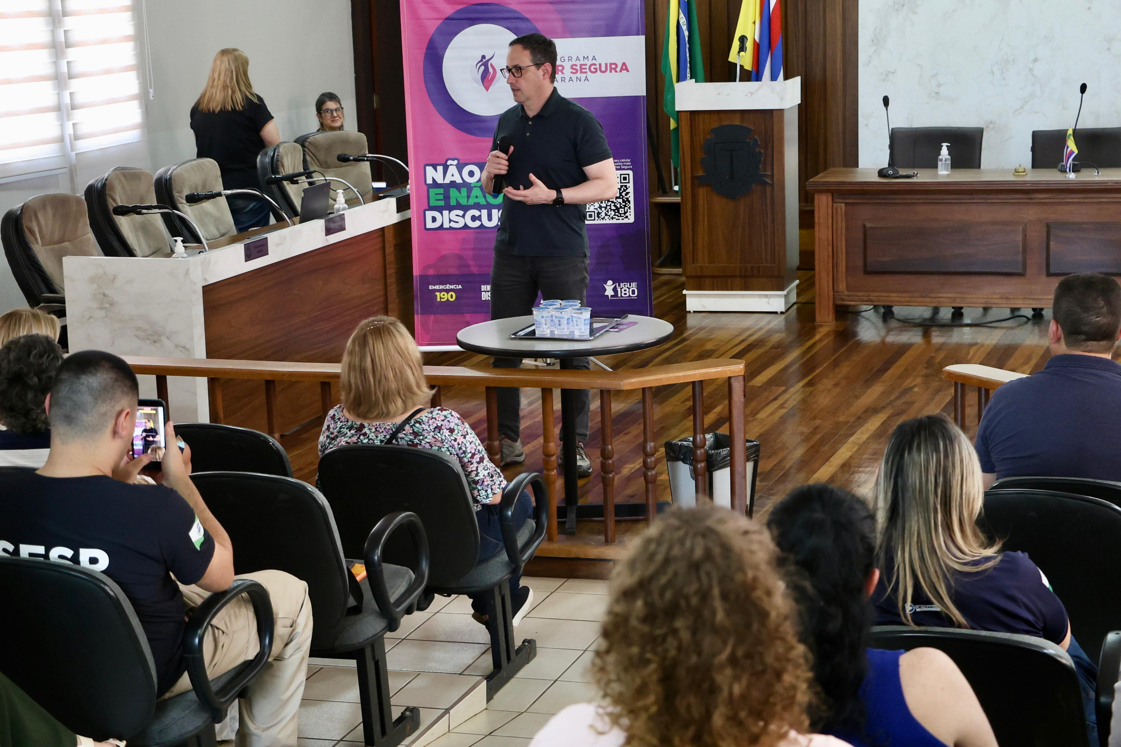 A Secretaria da Segurança Pública do Paraná (SESP), por meio do Programa Mulher Segura, promoveu na quinta-feira (6) um importante encontro com a Rede de Proteção às Mulheres, realizado na Câmara Municipal de Vereadores de Pitanga, no Centro do Estado. A ação teve como objetivo fortalecer o trabalho integrado entre os órgãos públicos e entidades que atuam na prevenção e no combate à violência contra a mulher.