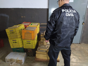 16:05 PCPR apreende 476 quilos de maconha em Foz do Iguaçu A Polícia Civil do Paraná (PCPR) apreendeu 476,5 quilos de maconha na terça-feira (22), em Foz do Iguaçu, na região Oeste do Estado. O entorpecente foi localizado em uma casa do bairro Vila C.