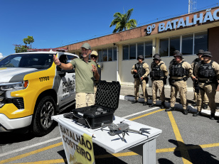 16:13 PMPR entrega drone à Patrulha Costeira e equipamento já será usado no Carnaval A Polícia Militar do Paraná (PMPR) entregou, na manhã desta sexta-feira (13), um drone DJI Mavic 2 Enterprise ao 9º Batalhão de Polícia Militar, em Paranaguá.