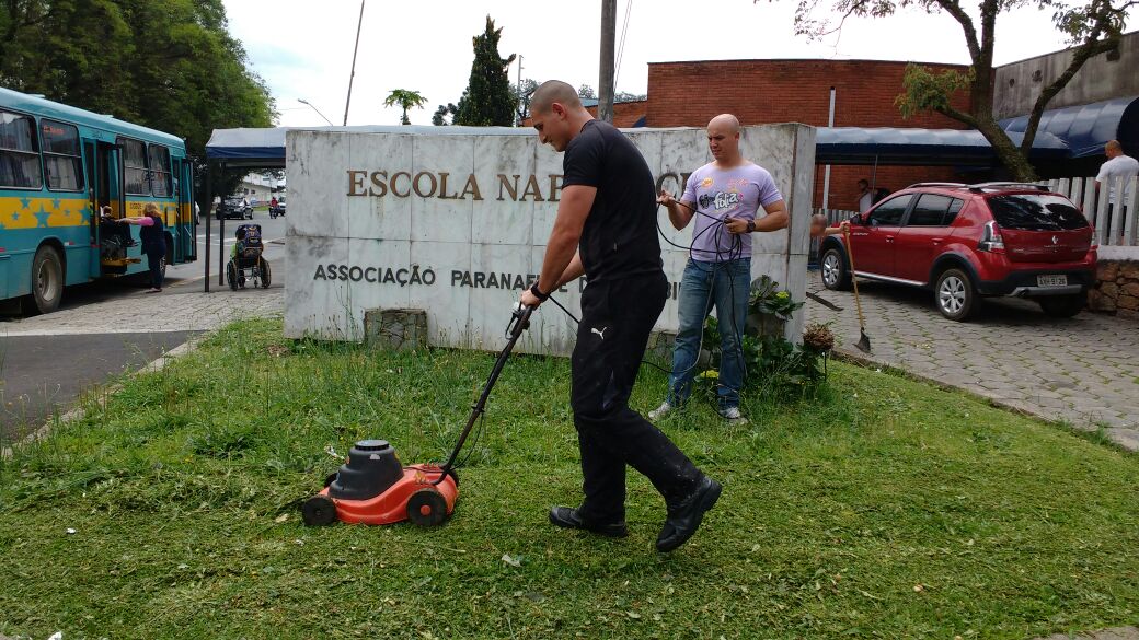 Alunos soldados do BPTran fazem trabalho voluntário em escola especial de Curitiba