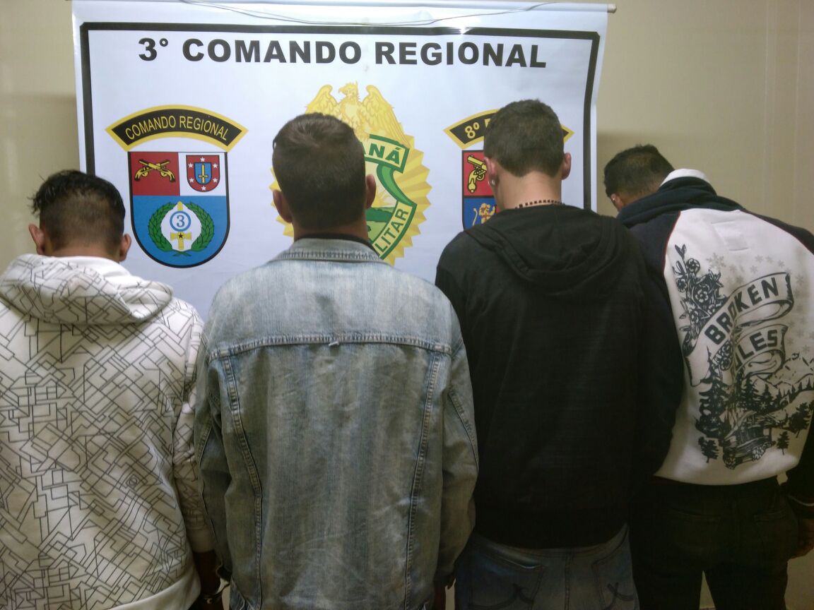 Após furtarem baterias de caminhões, quatro homens são encaminhados à delegacia pela PM na região noroeste do estado