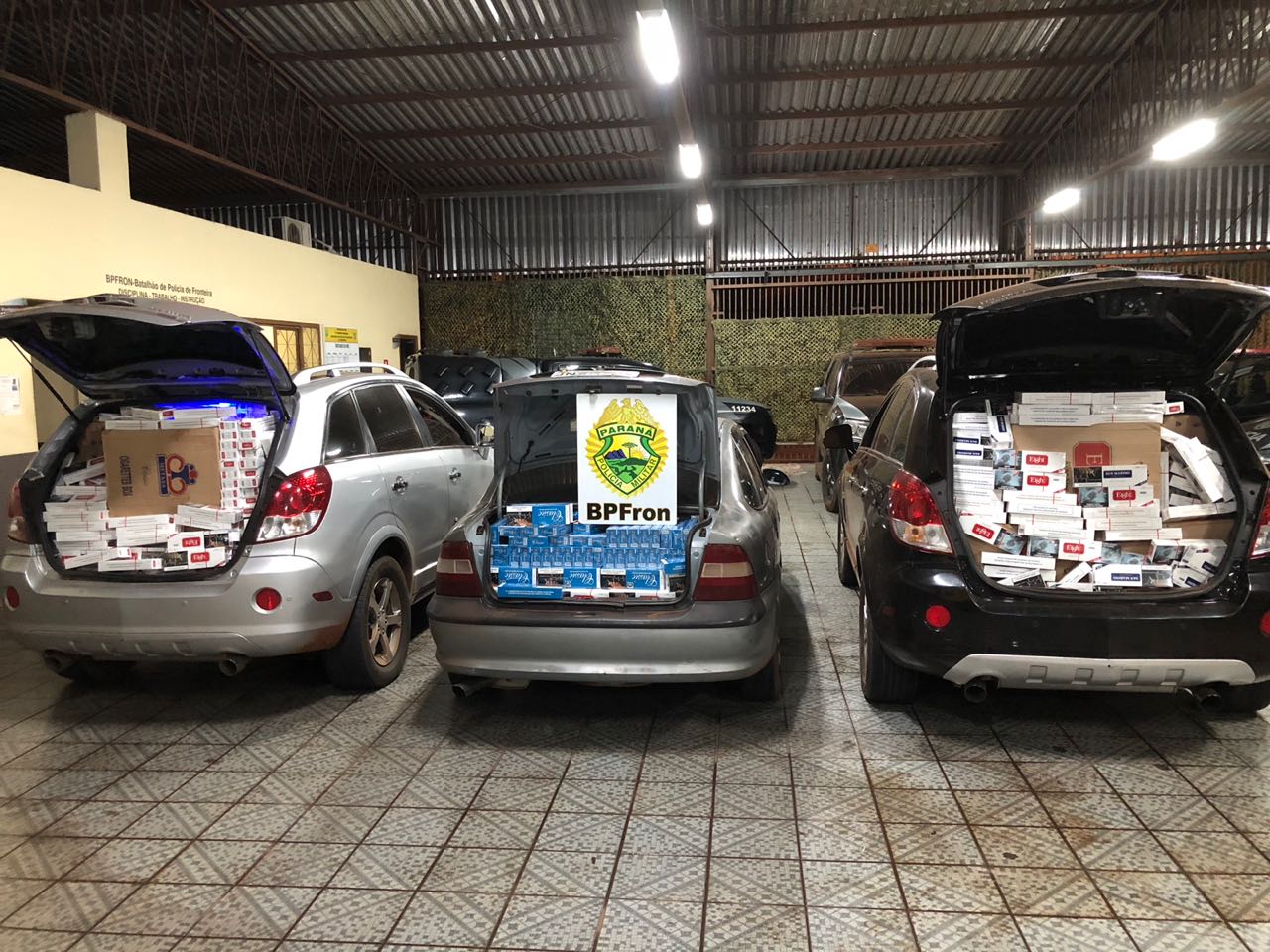BPFron apreende três carros com 60 mil carteiras de cigarros no Oeste do estado