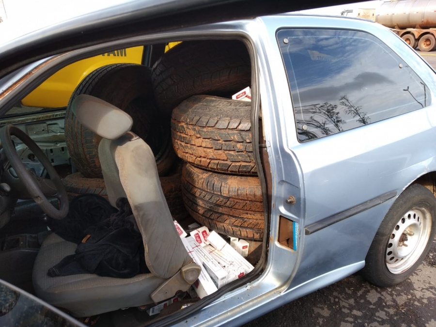 BPRv apreende carro com pneus e cigarros contrabandeados no Noroeste do estado