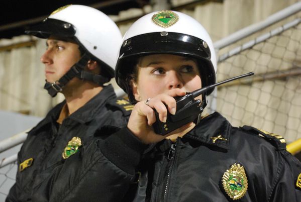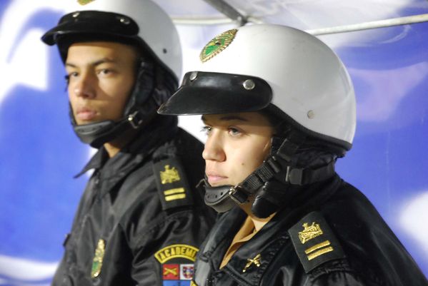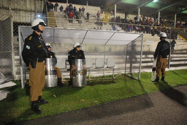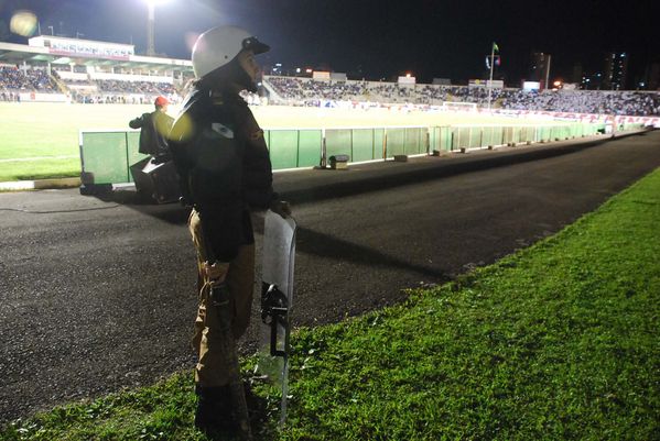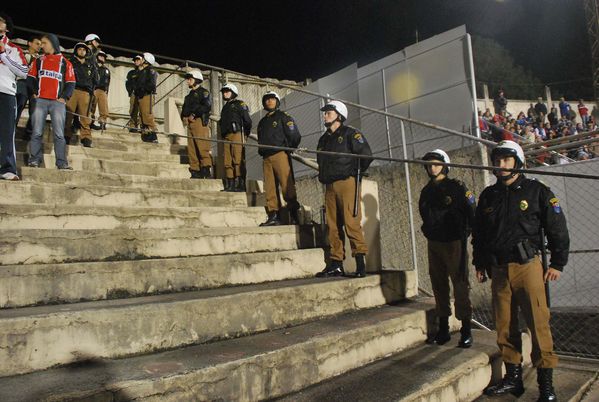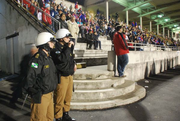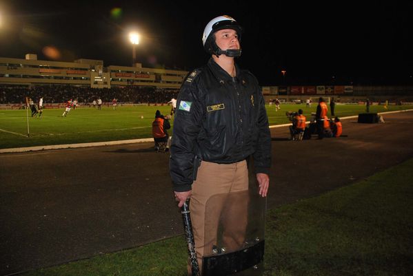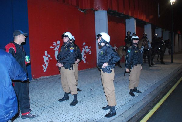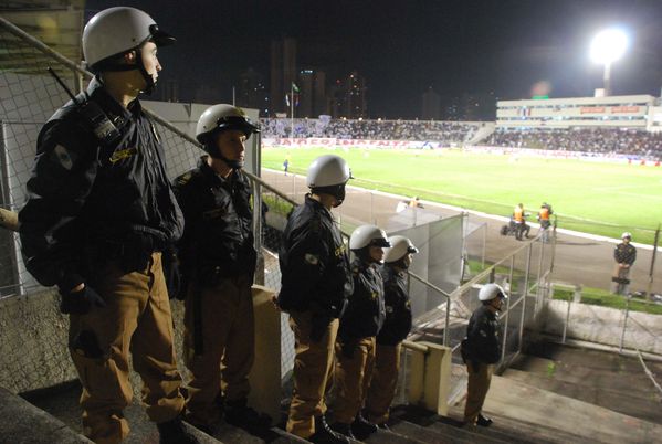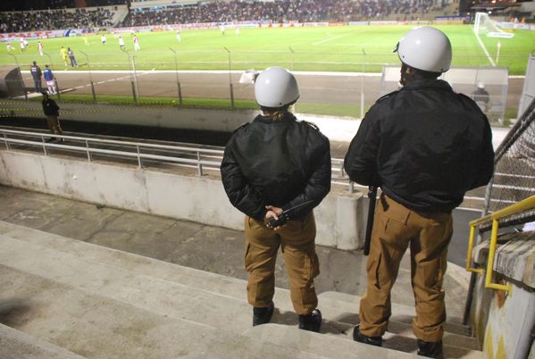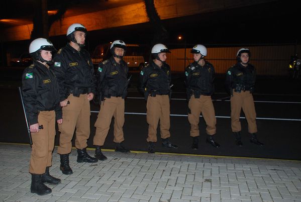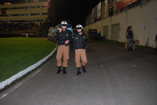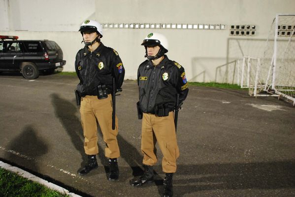 Cadetes da PM coordenam esquema de segurança da partida entre Paraná e Joinville
