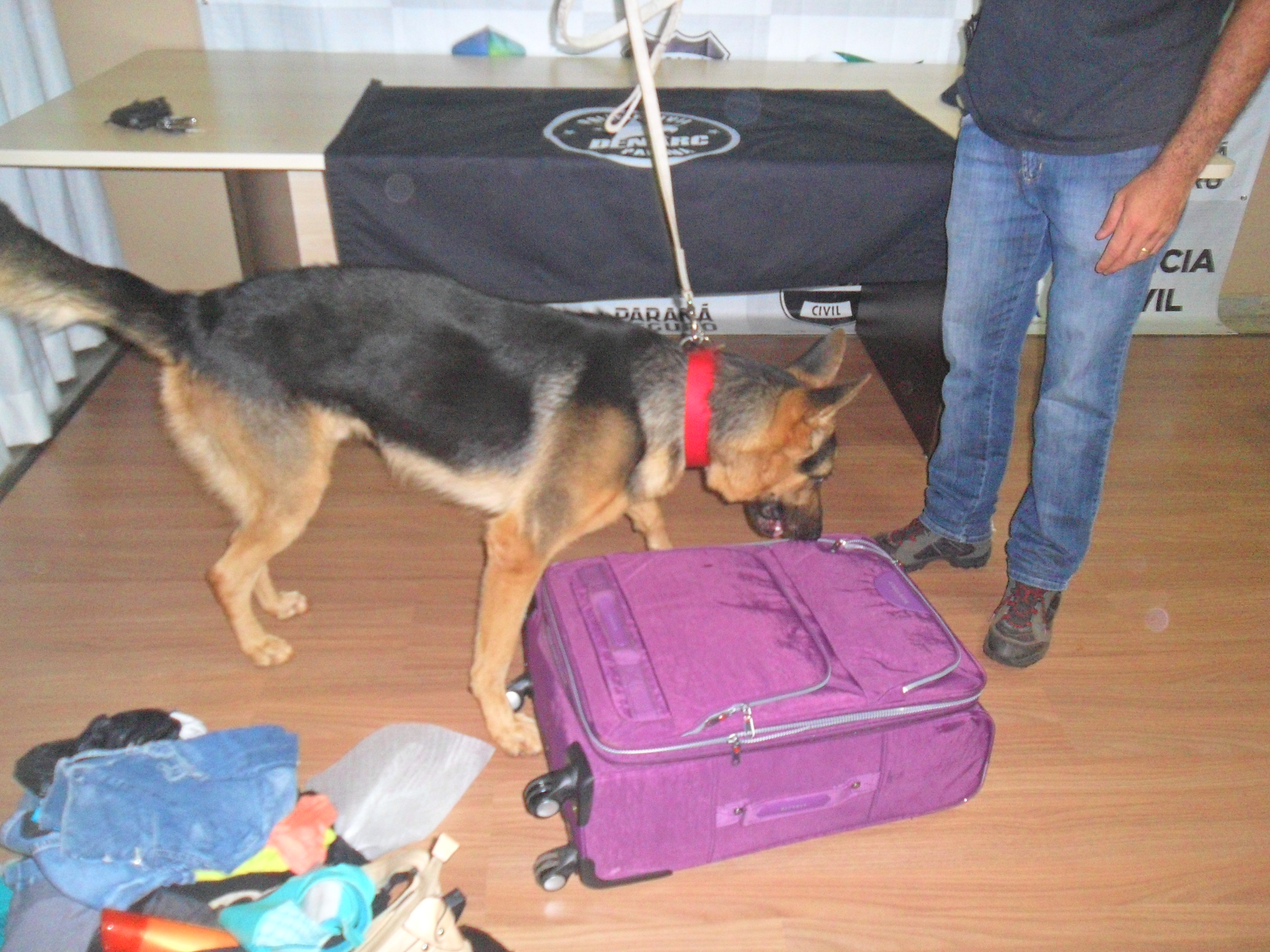 Cão farejador da Denarc encontra droga na mala de paraguaia