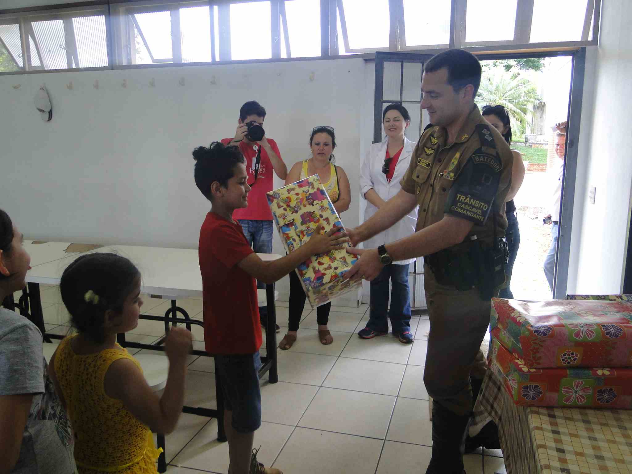 Crianças que fazem tratamento no Hospital do Câncer de Cascavel visitam sede de Batalhão da PM