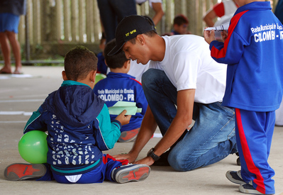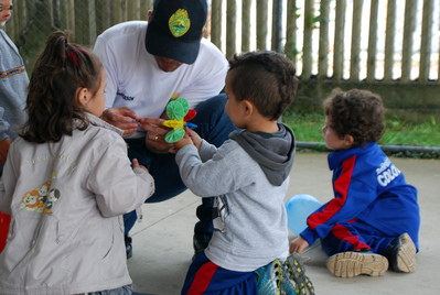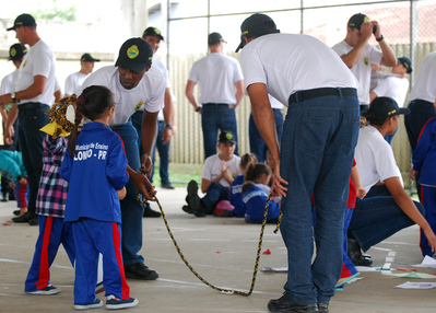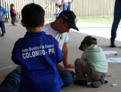 Em Colombo, alunos soldados fazem atividade recreativa e doam chocolates para crianças