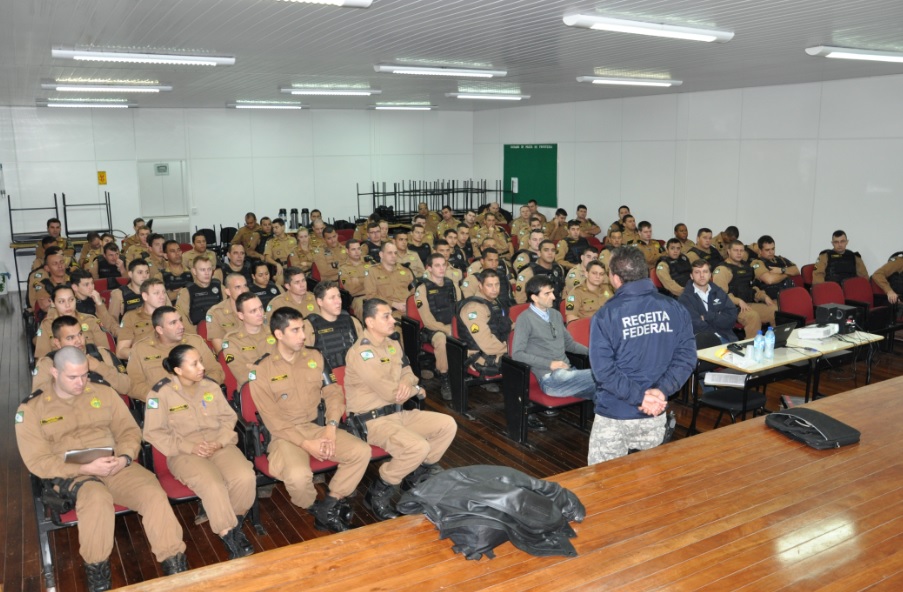 Em Foz do Iguaçu, policiais militares passam por capacitação com agentes da Receita Federal sobre o trabalho desenvolvido na fronteira