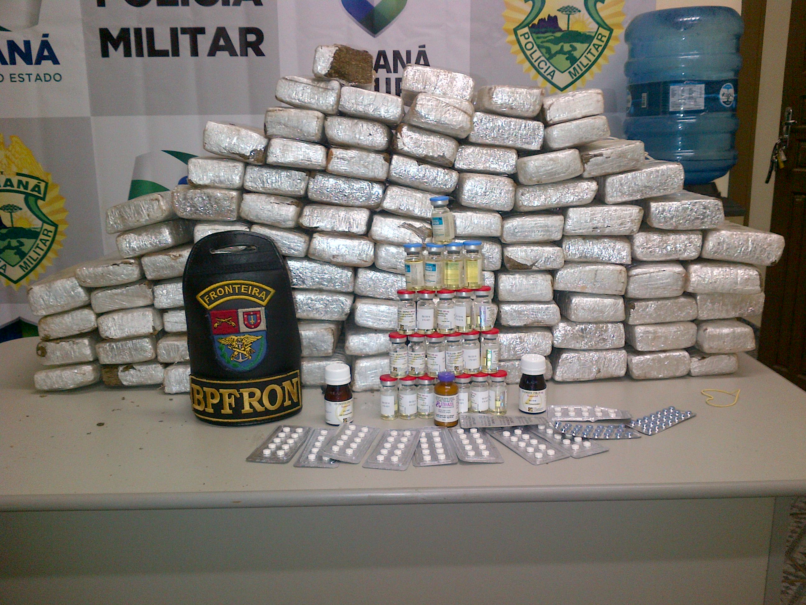 Em Guaíra, BPFron apreende veículo carregado com 52 quilos de maconha e anabolizantes