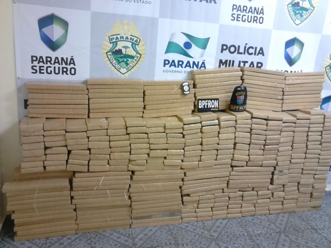 Em diferentes ações no município de Guaíra (PR), policiais militares apreendem veículo, caixas de cigarros e 488 Kg de maconha divididos em tabletes
