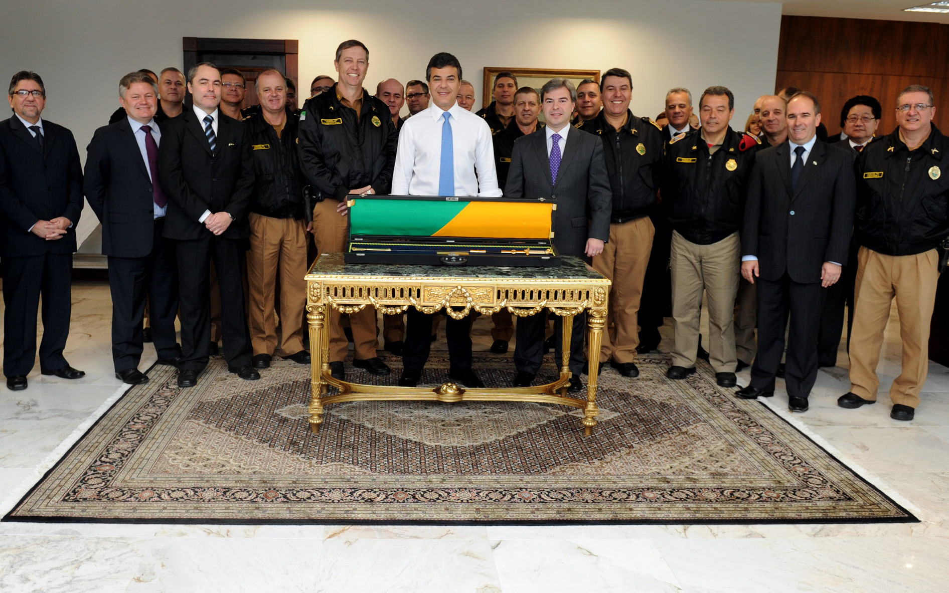Equipe da segurança entrega espada de comando a Beto Richa