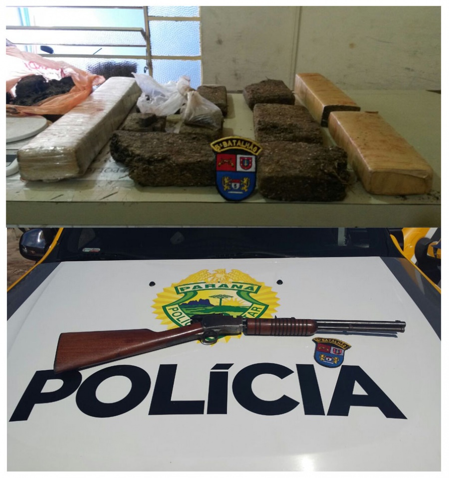 Espingarda e oito quilos de maconha são apreendidos pela PM em Londrina