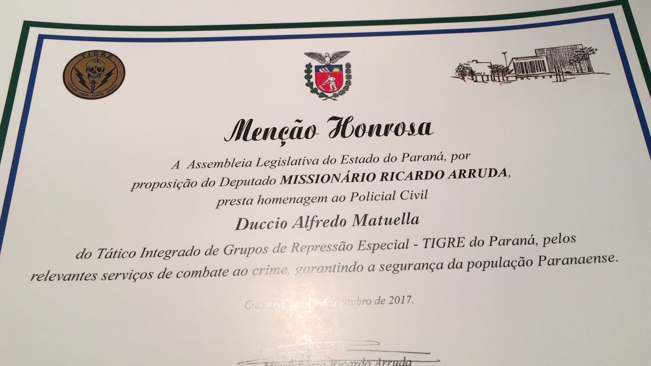 Grupo tático da Polícia Civil recebe menção honrosa na Assembleia Legislativa