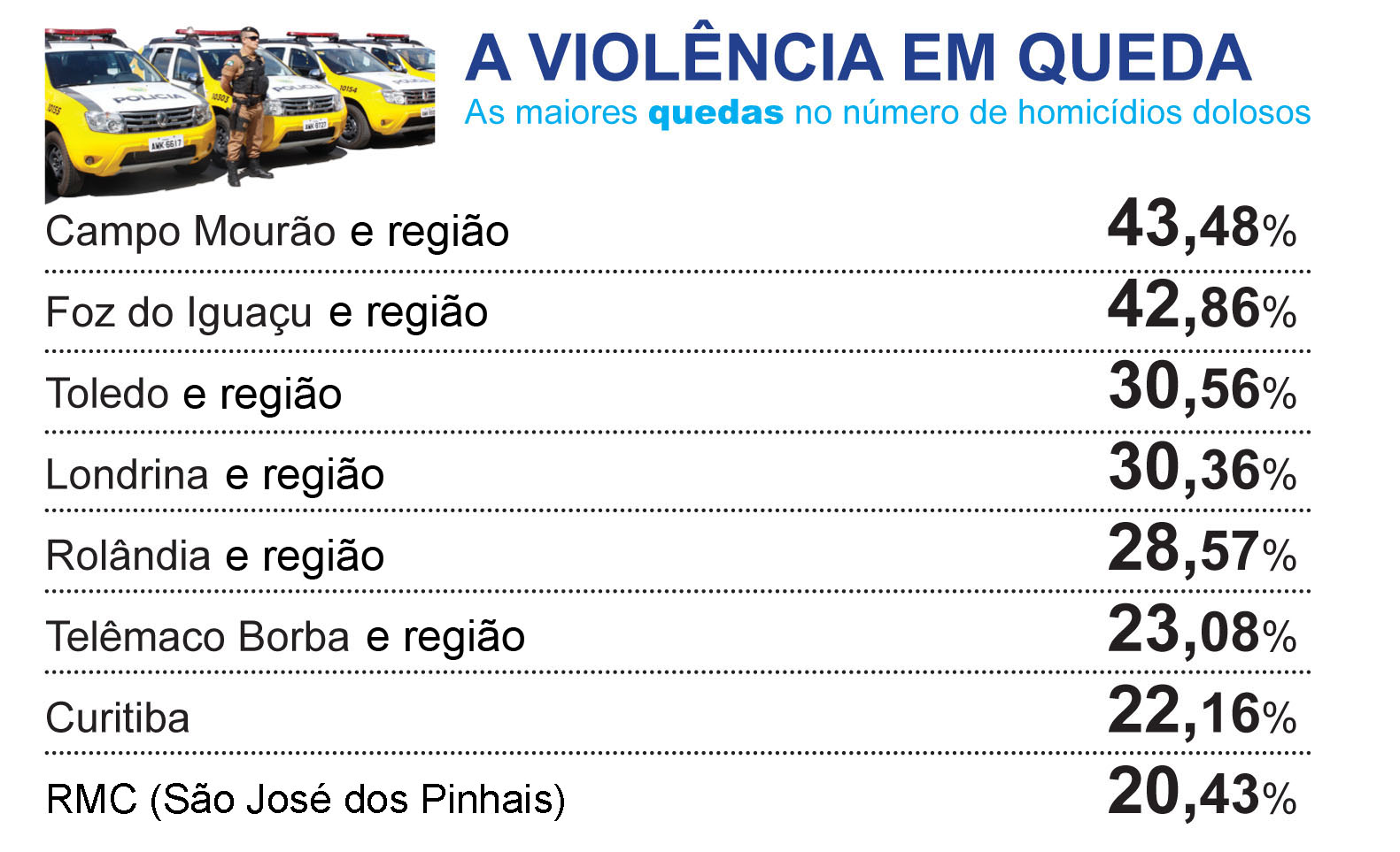 Homicídios dolosos diminuem 9,6% em todo o Paraná