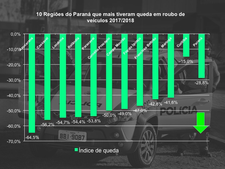 Número de roubos cai 27% no Paraná