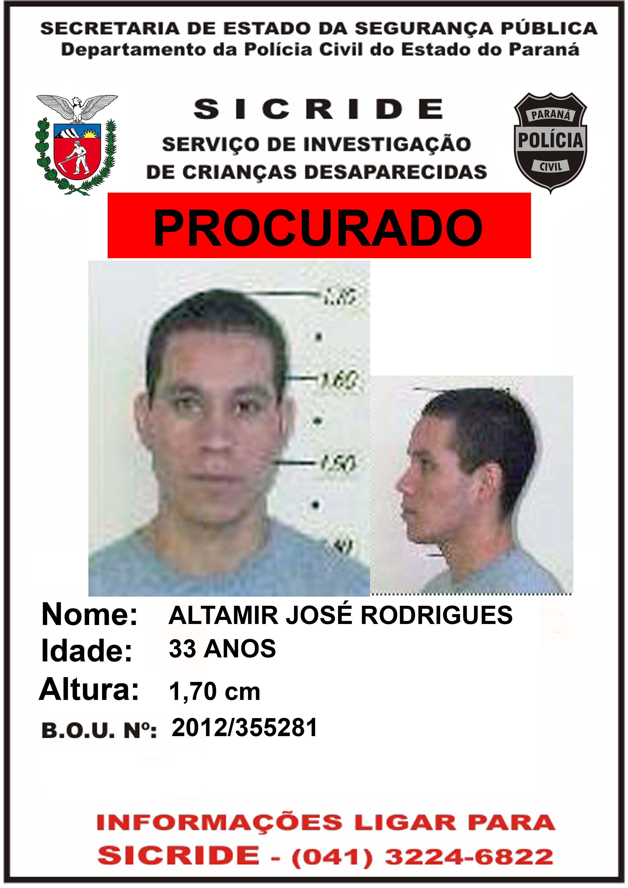Registrar Boletim de Ocorrência de pessoa desaparecida