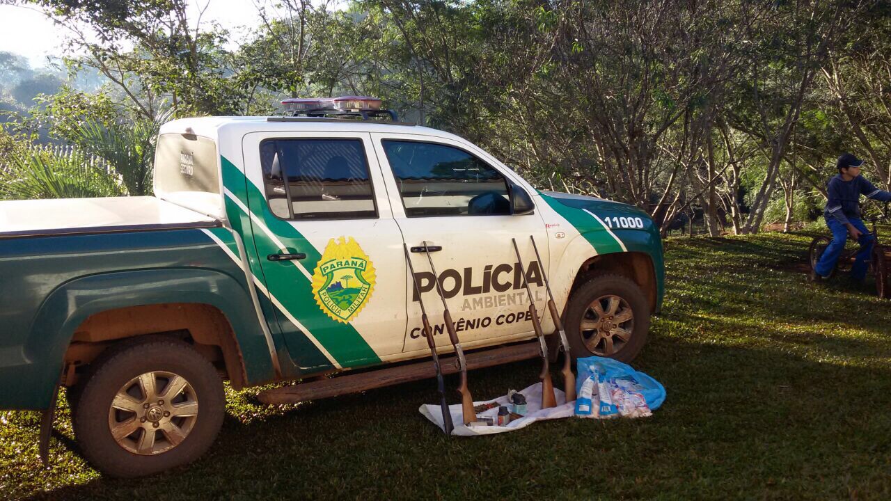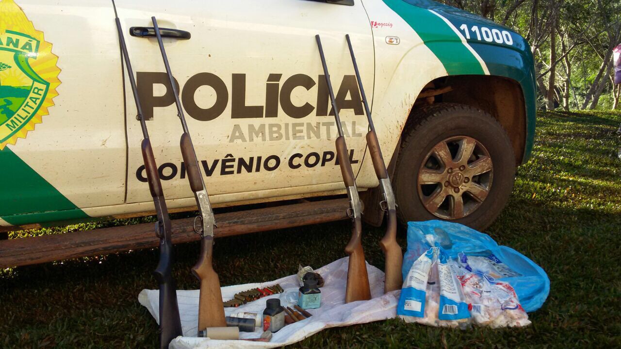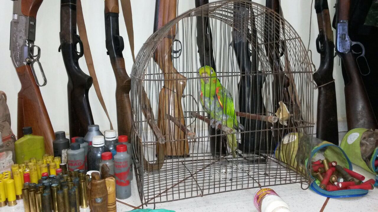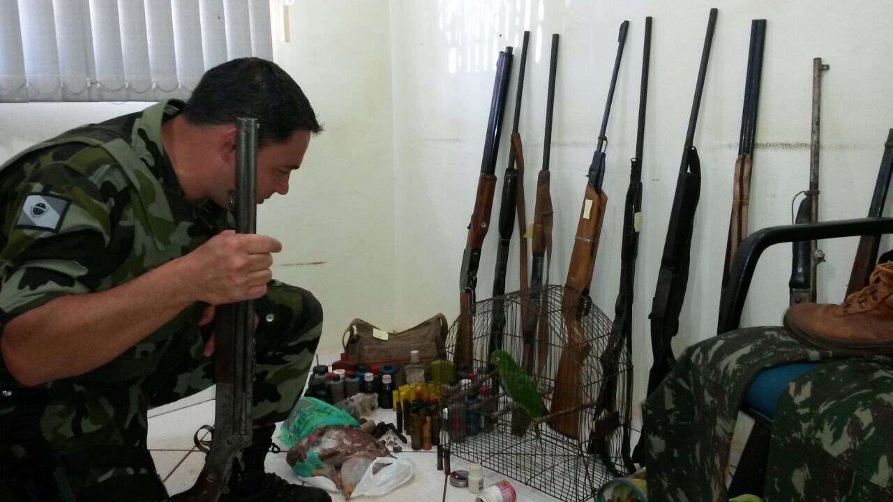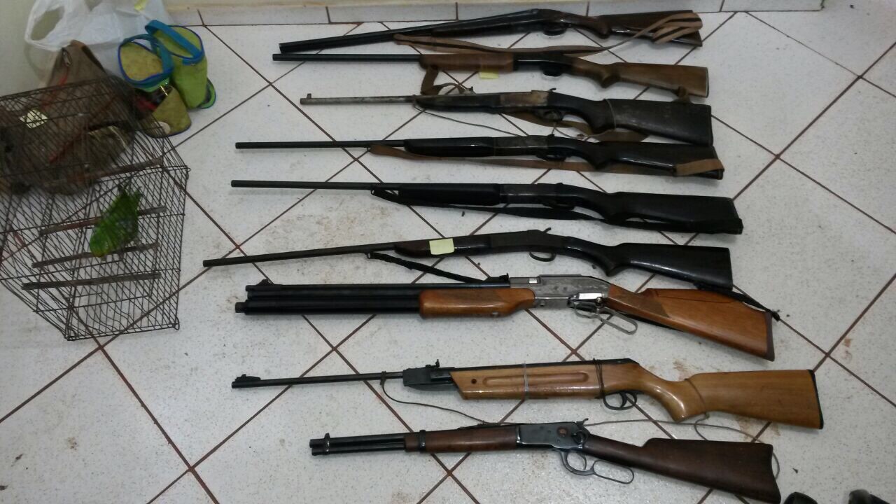 Policiais ambientais realizam operação na região oeste e apreendem 17 armas, 500 cartuchos, carne de caça e aves nativas; oito são presos