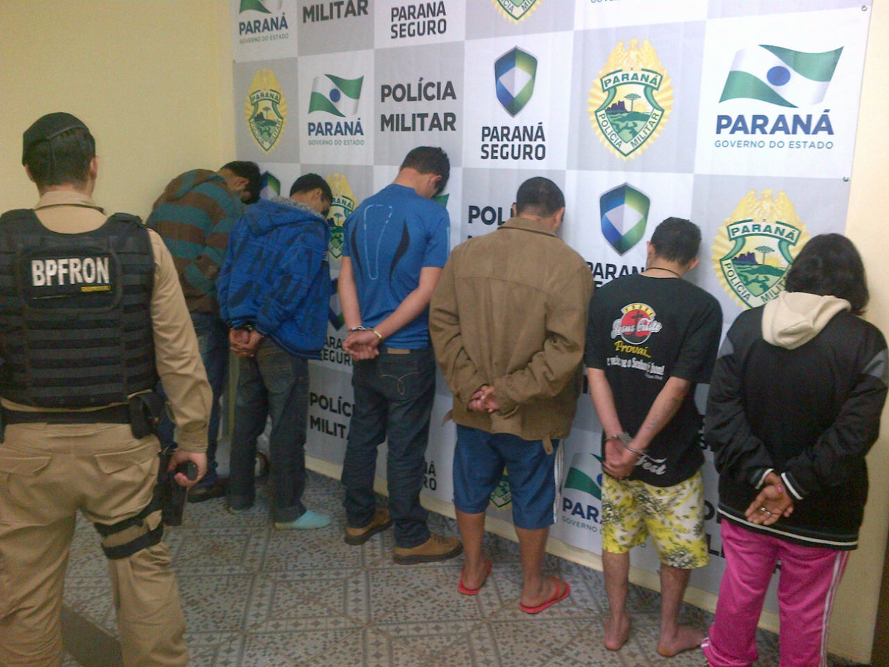 Policiais militares cumprem mandados na região de fronteira e conduzem seis pessoas à delegacia; arma e munições são apreendidas