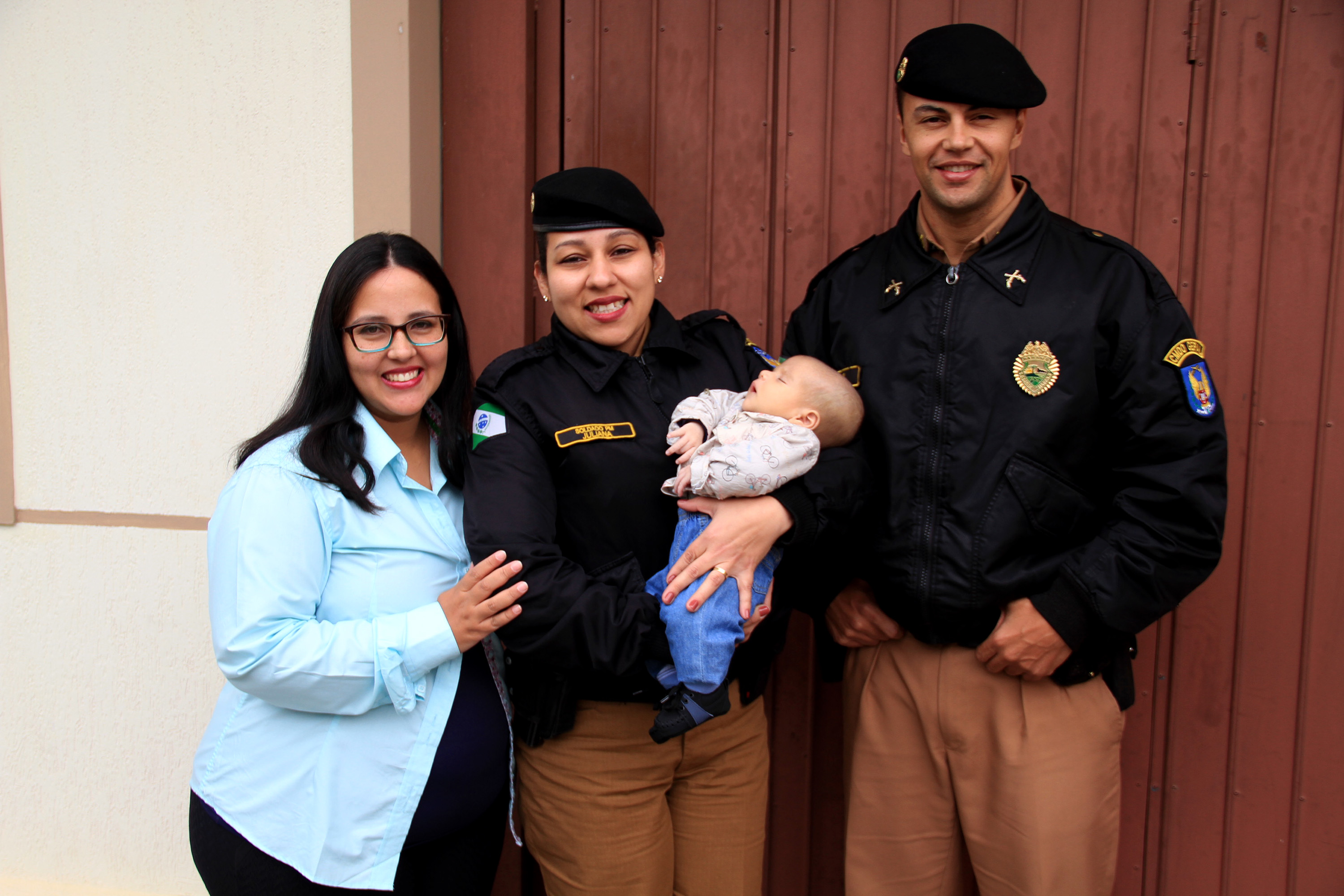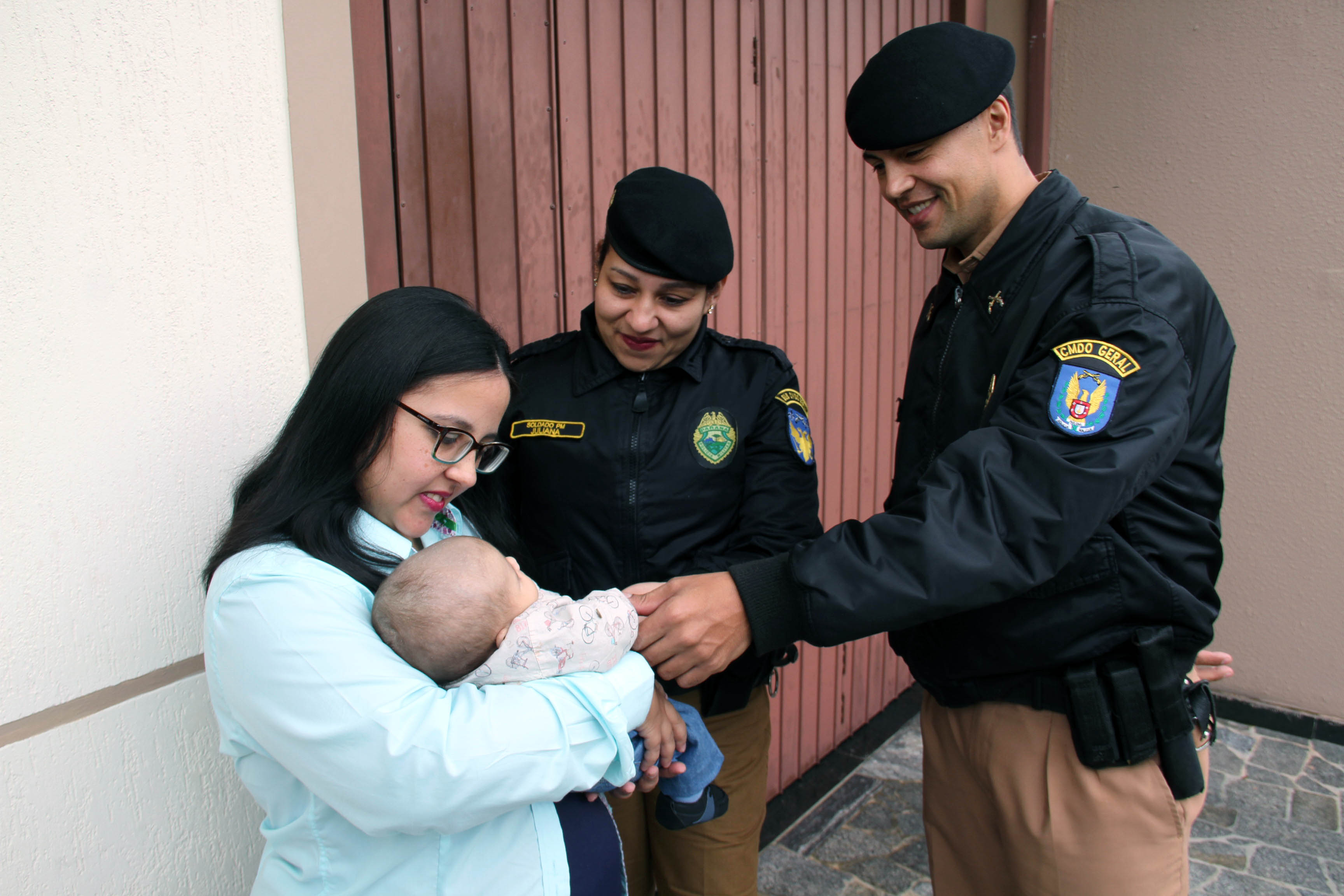 Policiais militares visitam bebê que ajudaram a salvar após ele cair e sofrer uma fratura no crânio