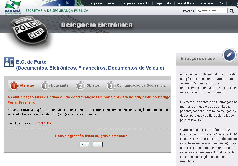Registrar Boletim de Ocorrência de furto