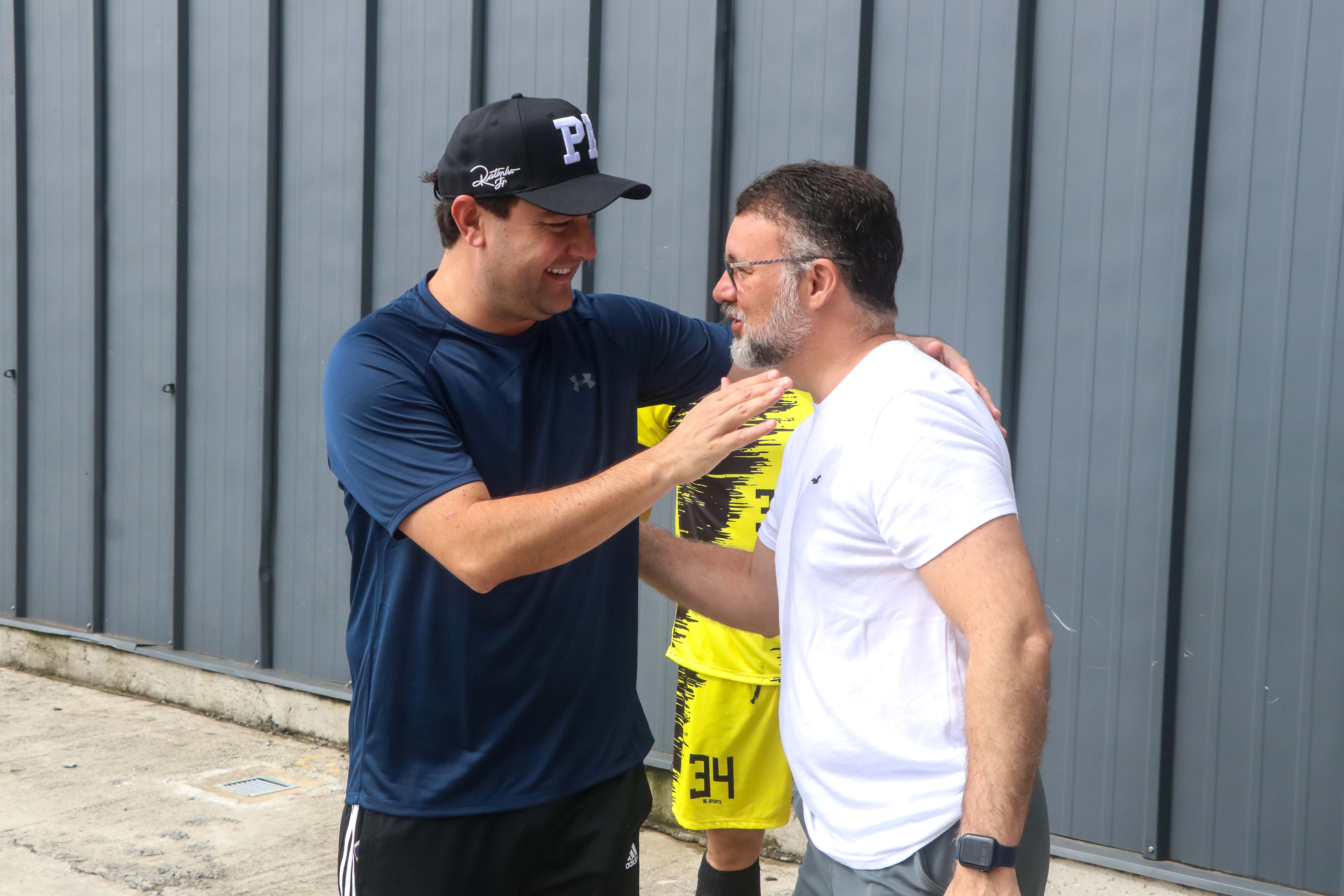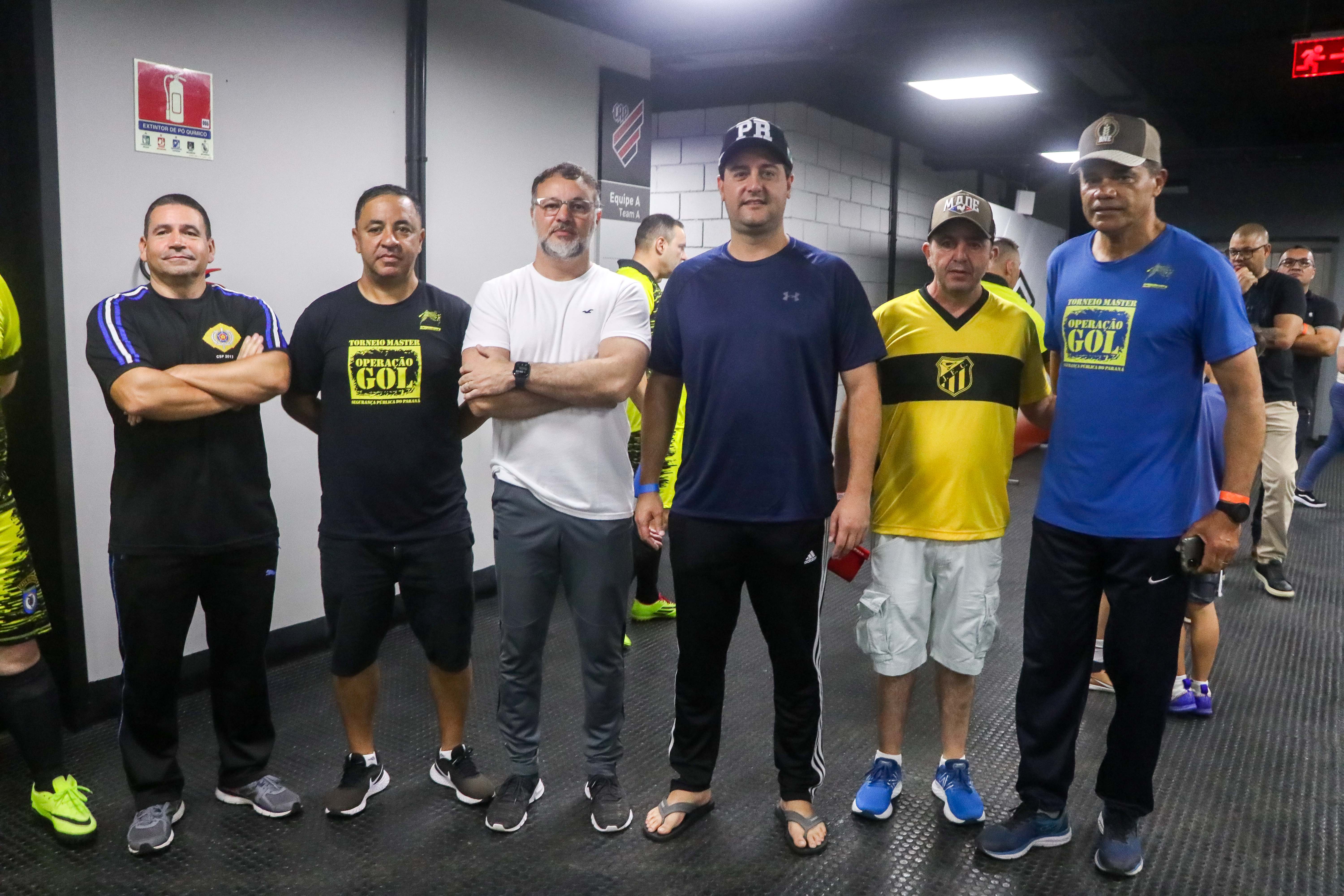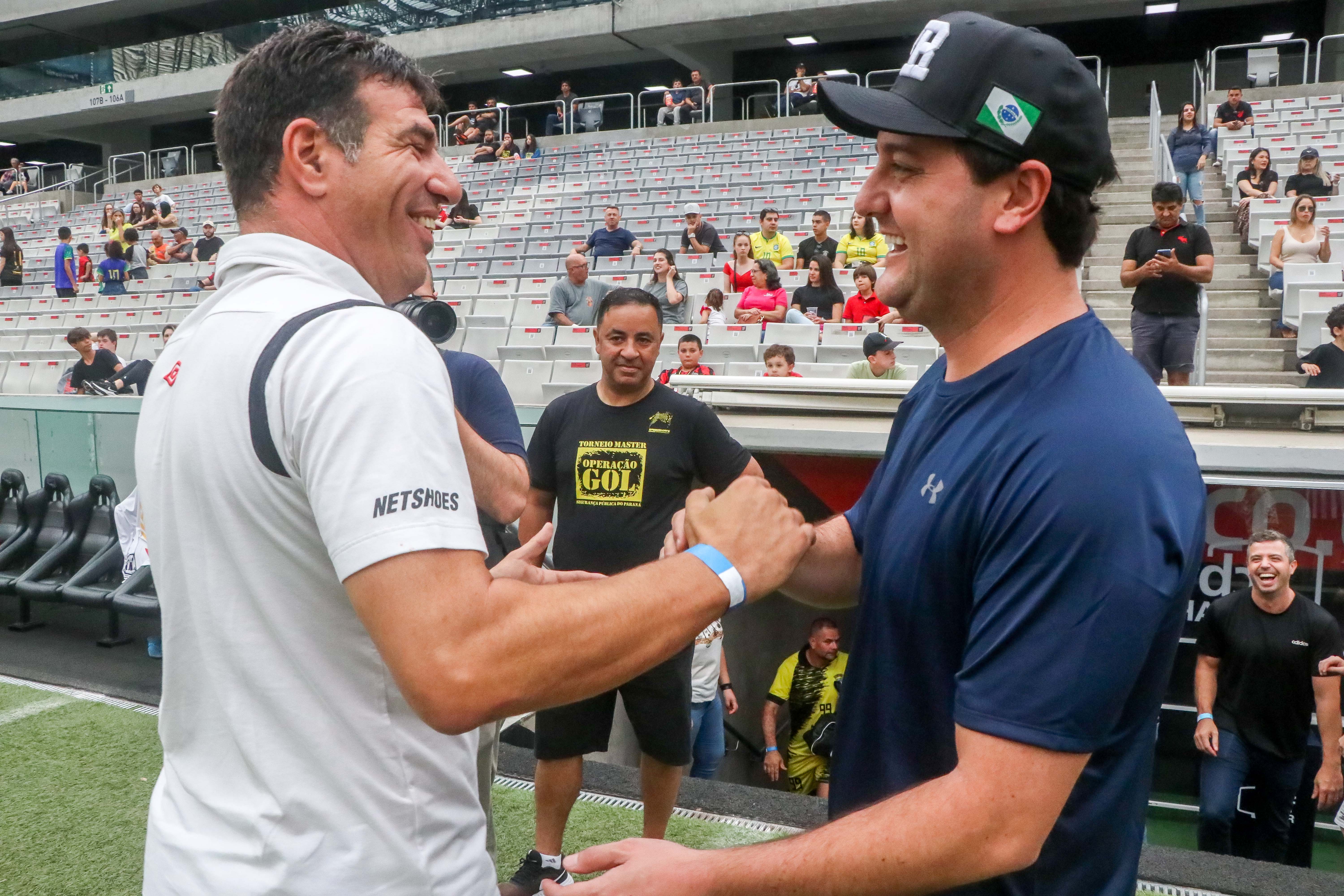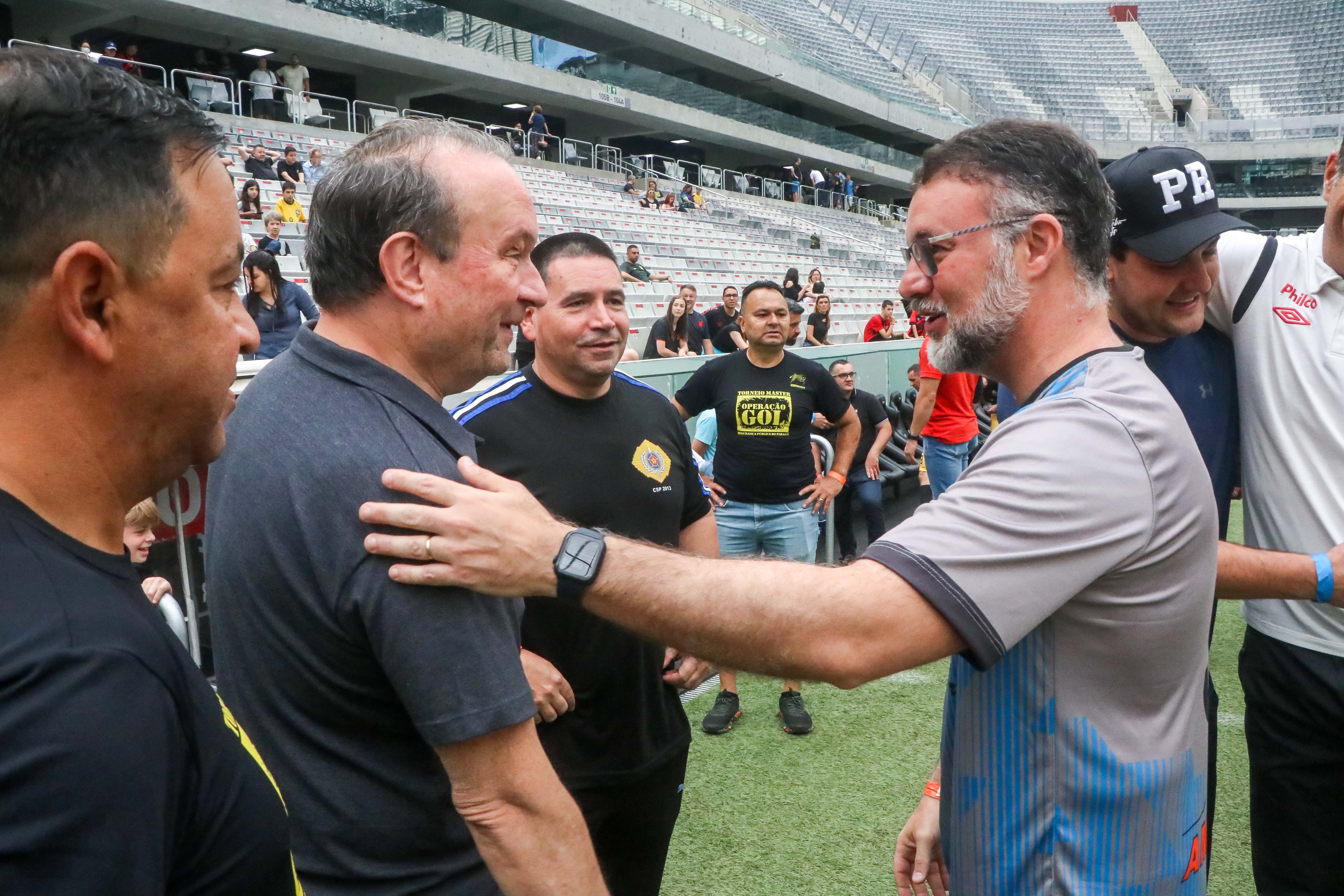 O governador Carlo Massa Ratinho Junior e o secretário de seuança pública, Wagner Mesquita de Oliveira, participam da Operação Gol, campeonato de futebol promovido pela secretaria de segurança entre as policias que do quadro da secretaria.