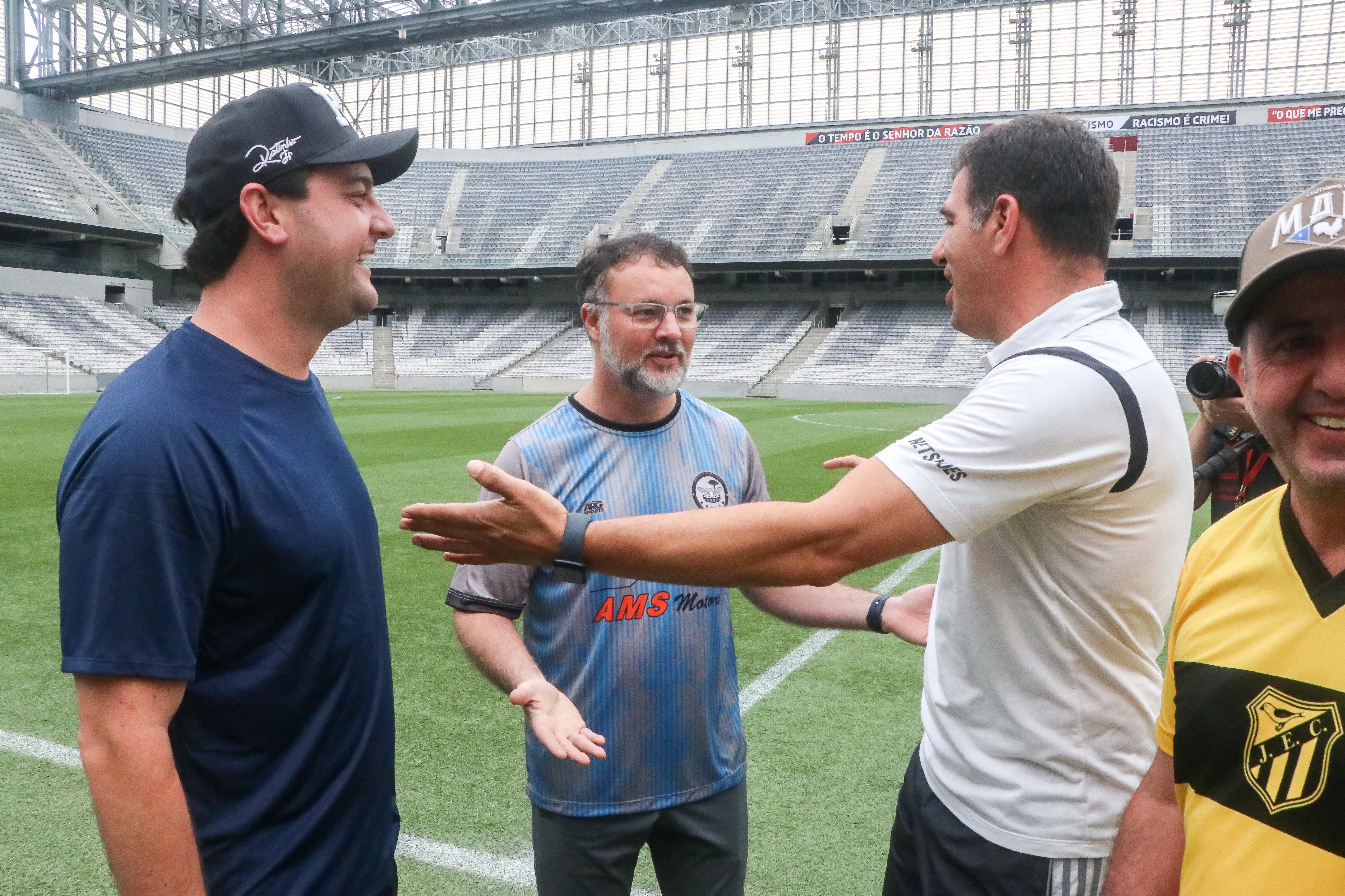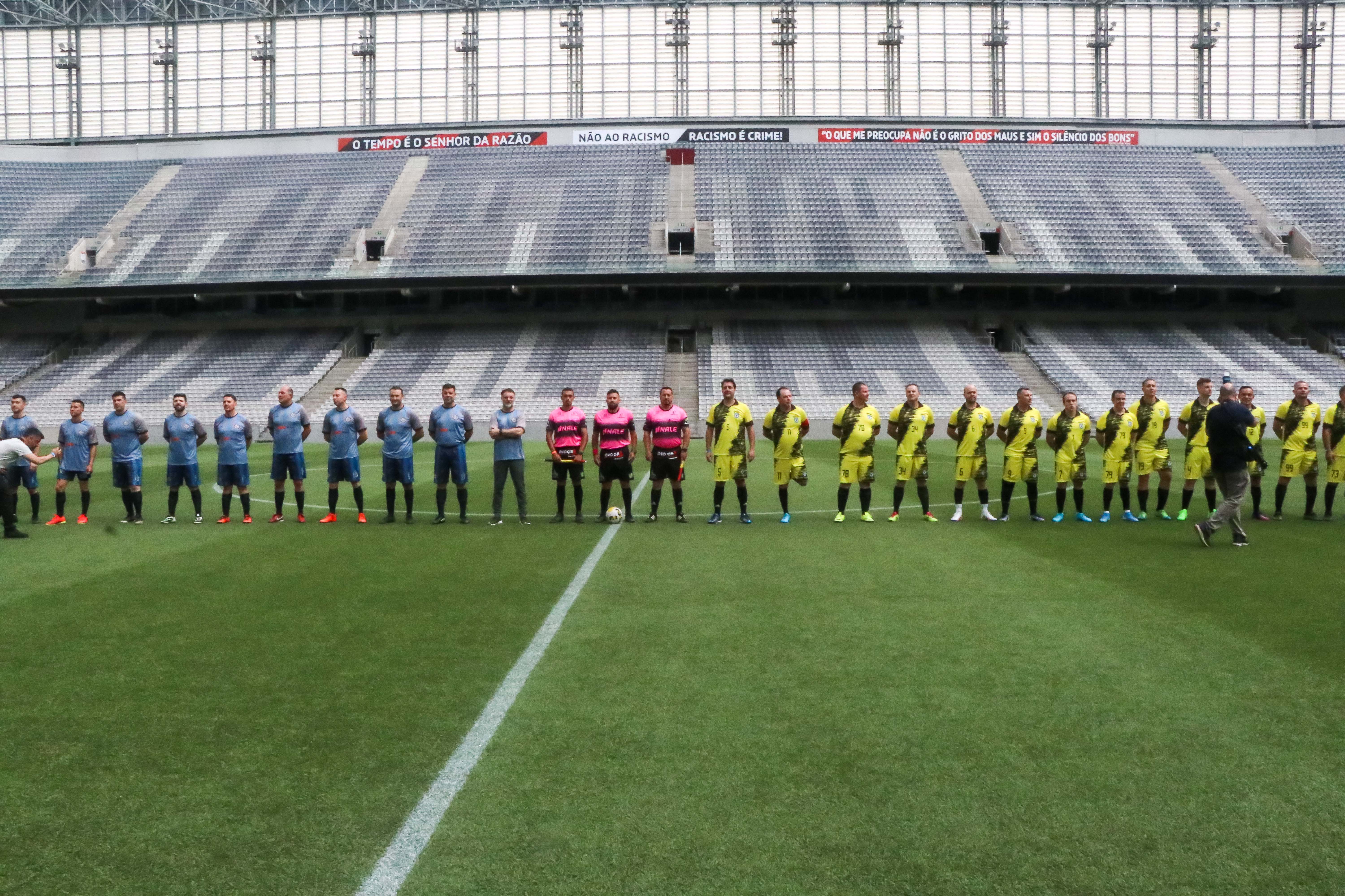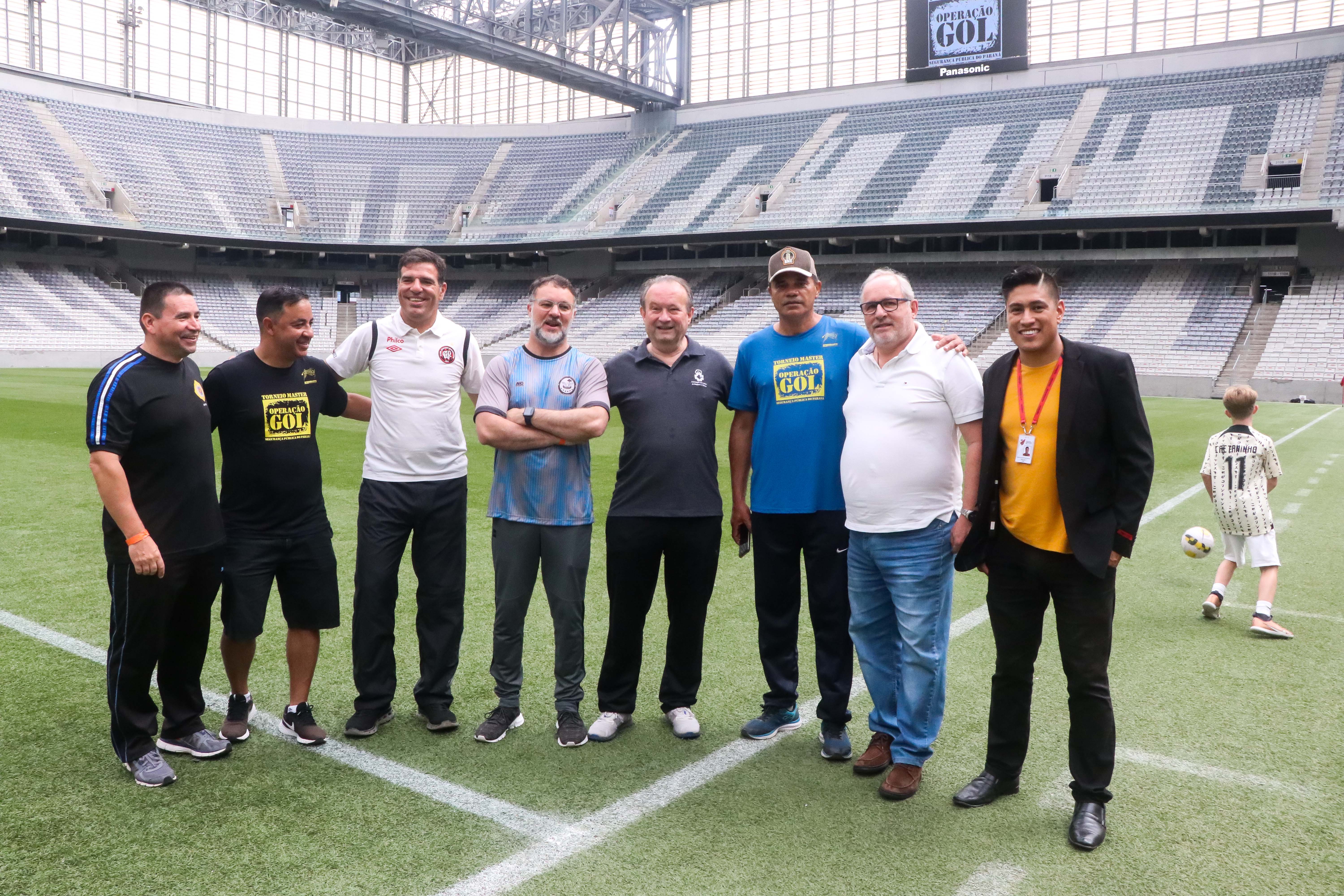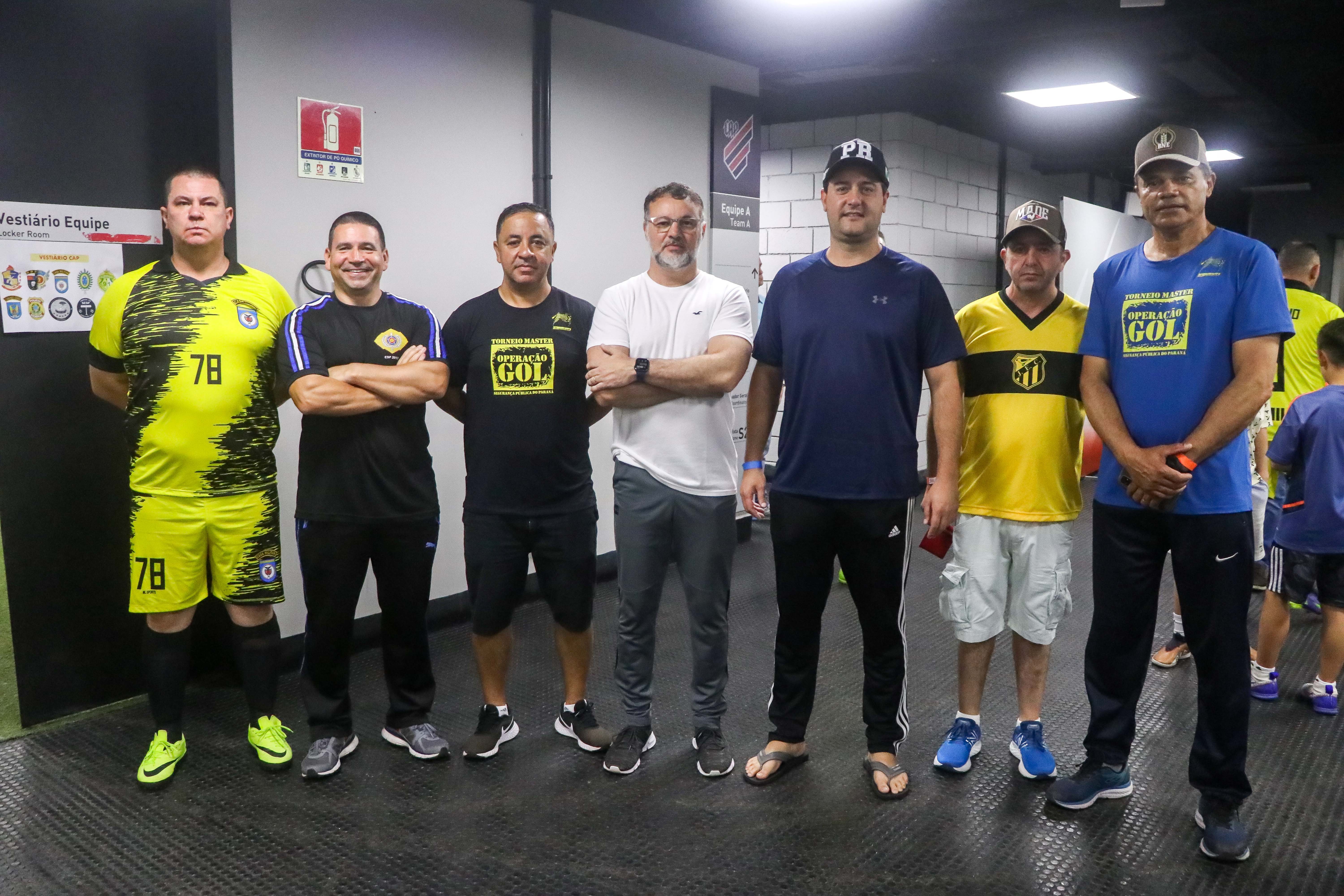 O governador Carlo Massa Ratinho Junior e o secretário de seuança pública, Wagner Mesquita de Oliveira, participam da Operação Gol, campeonato de futebol promovido pela secretaria de segurança entre as policias que do quadro da secretaria.