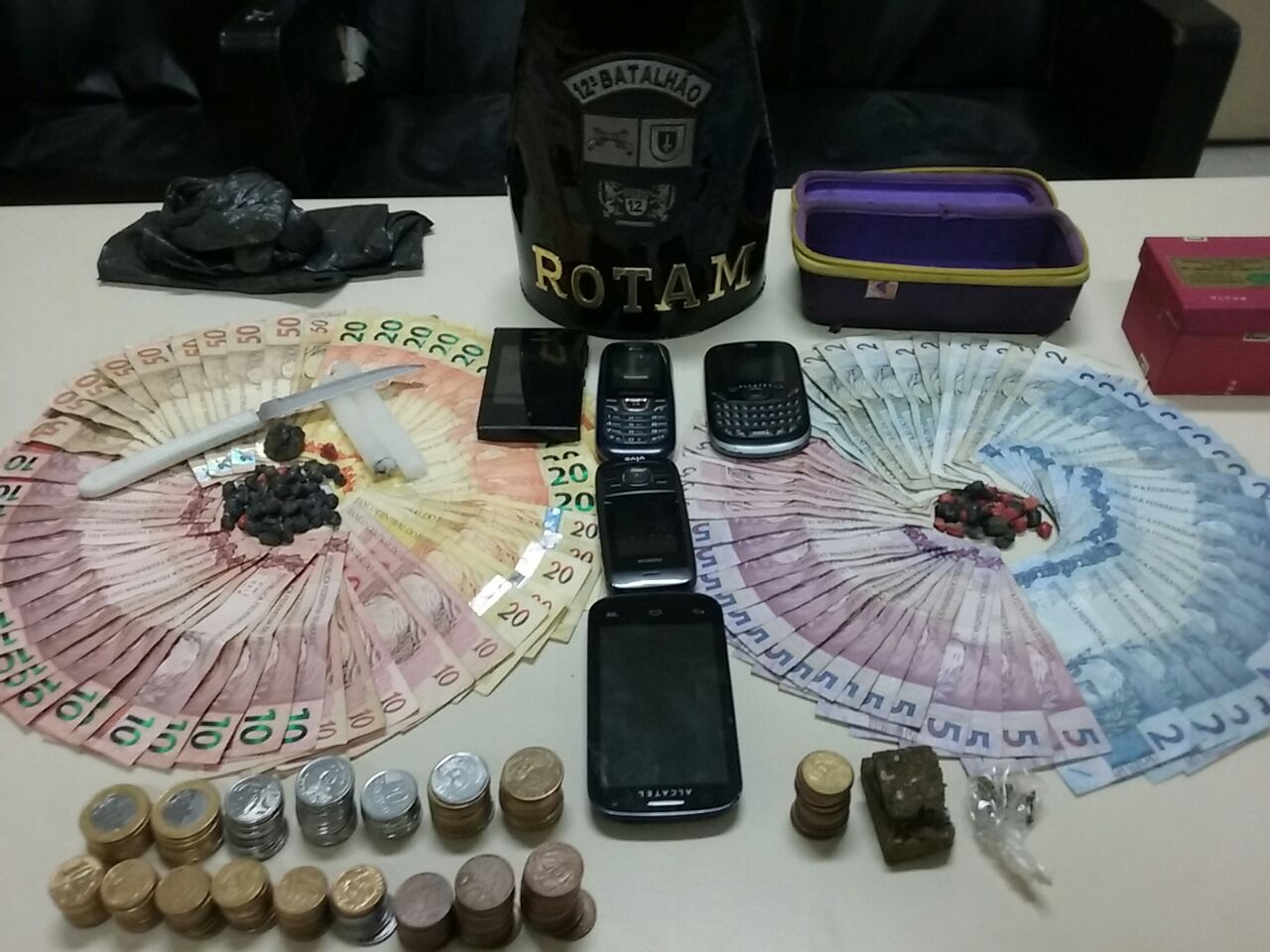 Três são conduzidos à delegacia após abordagem da ROTAM a hotel na região central de Curitiba (PR); droga e dinheiro são apreendidos