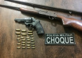Veículo roubado e com placas clonadas é recuperado pela PM no Oeste do estado; dois homens acabam presos e três armas apreendidas