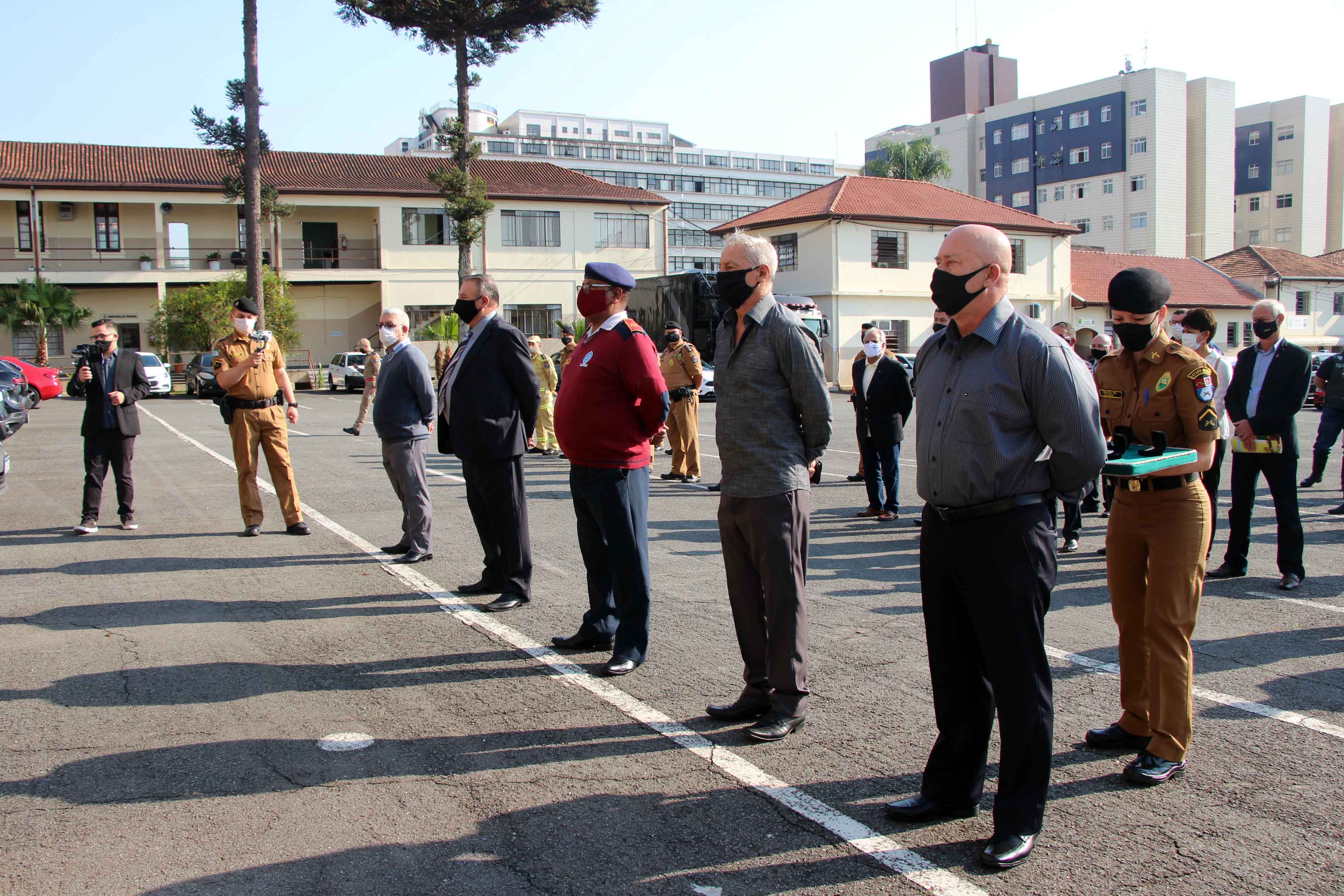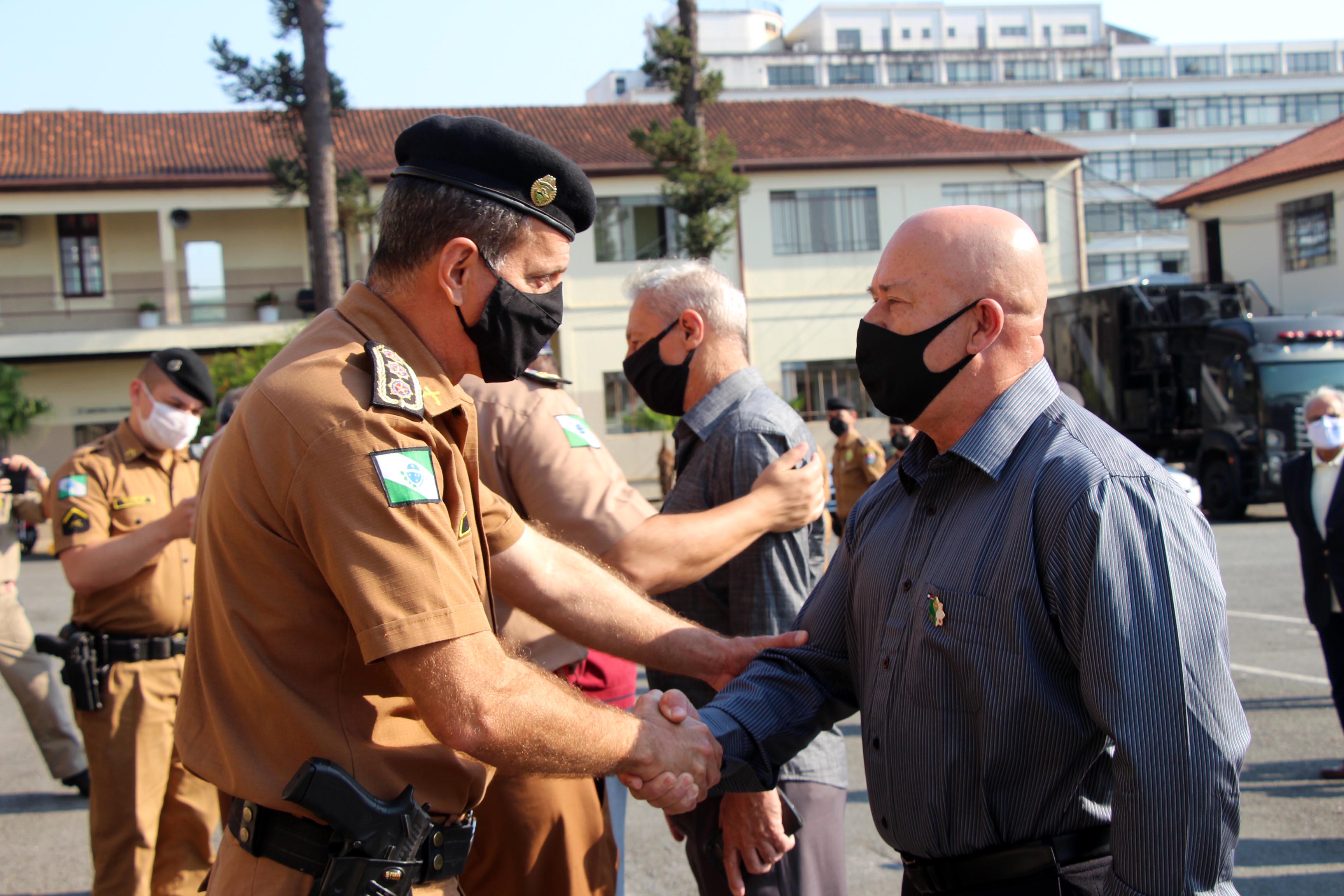 Curitiba, 01 de outubro de 2020. Dia do Veterano. Foto: Em comemoração ao Dia do Militar Estadual Veterano, policias e bombeiros da reserva realizam uma visita ao BPMOA. Foto: Soldado Ismael Ponchio