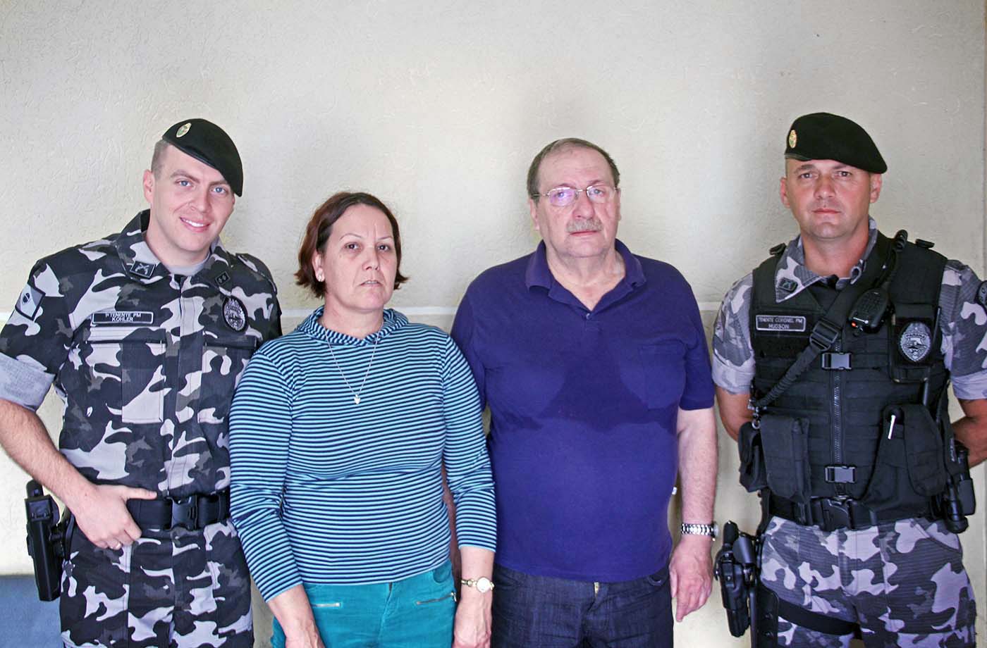 Vítimas de roubo evitado pela RONE procuram o BOPE para agradecer rápida ação dos policiais que resultou na prisão de dupla armada e na recuperação de mais de R$ 4 mil em dinheiro e cheques