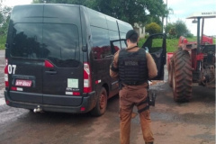 No município de Mercedes (PR), BPFRon apreende cerca de 100 caixas de cigarros contrabandeados, trator e Van