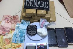 Trio é preso com carro roubado e embalando drogas para venda