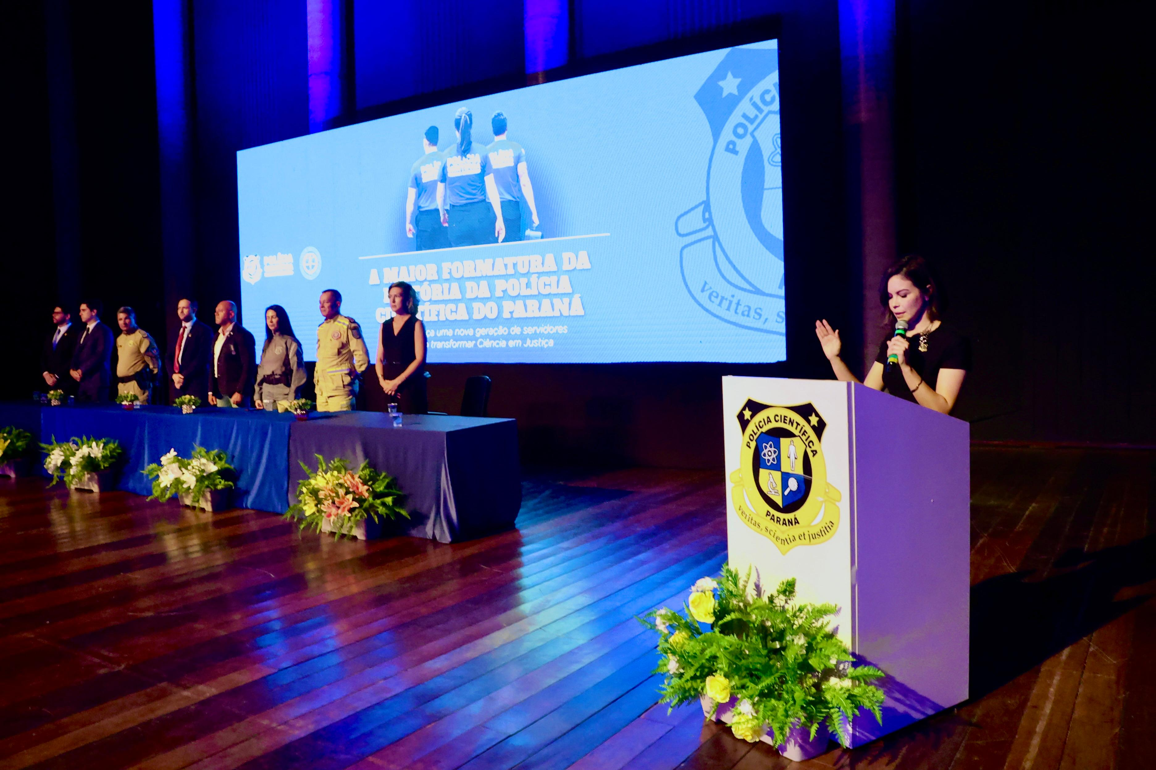A Polícia Científica do Paraná (PCIPR) realizou nesta terça-feira (27) a maior formatura de sua história, com a conclusão do Curso de Formação de Técnicos de Perícia Oficial e Peritos Oficiais Criminais por 186 novos profissionais — 128 peritos oficiais criminais e 58 técnicos de perícia oficial. A solenidade ocorreu às 19h, no Canal da Música, em Curitiba.