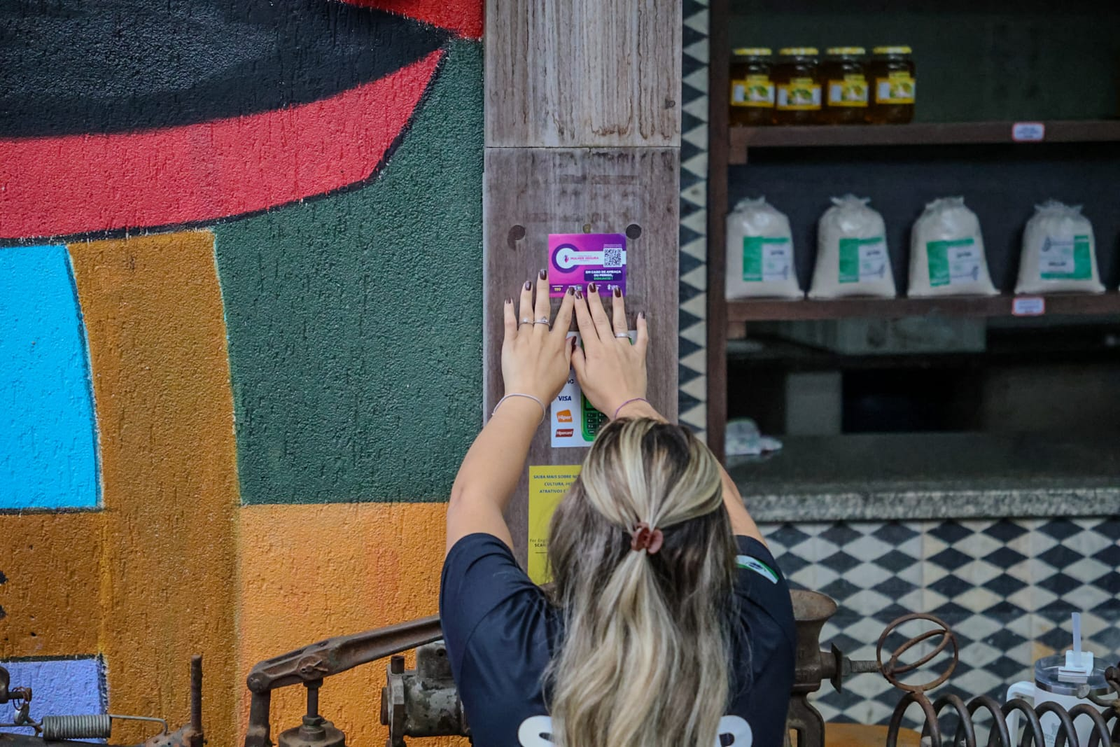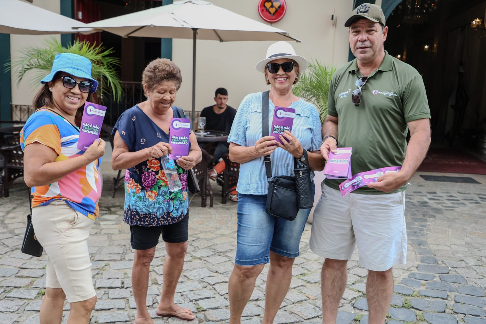 Durante a ação, equipes do programa realizaram abordagens educativas e a distribuição de materiais informativos em pontos de grande circulação, além da fixação de adesivos com orientações de segurança e acesso ao QR Code da página oficial do Programa Mulher Segura. A mobilização contou com a adesão do comércio local e de representantes do trade turístico.