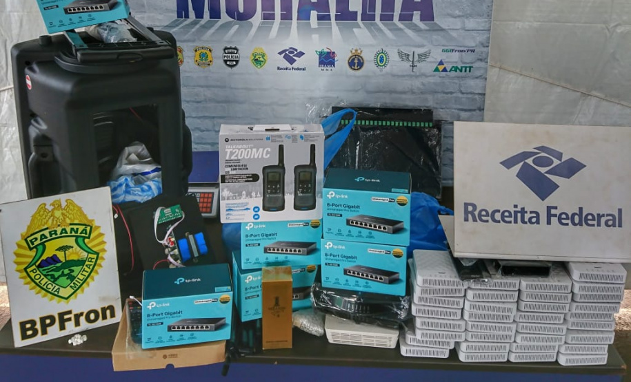Na primeira situação, os policiais estavam em patrulhamento pela BR 277, no âmbito da Operação Muralha, quando abordaram um veículo GM/Classic. Durante buscas foram localizados quatro volumes de mercadorias. Segundo informações do batalhão, dentre os produtos havia uma caixa de som, que ao ser passado pelo equipamento de scanner constatou 55 aparelhos receptores ocultos.