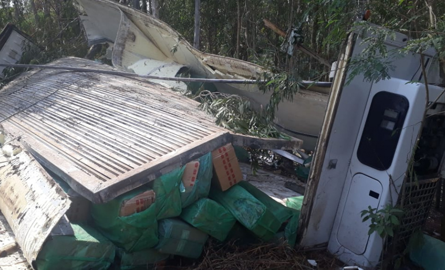 Um capotamento de um caminhão gerou tumulto na PR 082, em Nova Olímpia (PR), na última quarta-feira (28/08). Várias pessoas se agruparam na rodovia após o acidente, e a situação chamou a atenção pela quantidade de produtos contrabandeados que havia dentro do veículo, que foi abandonado pelo condutor antes da chegada dos policiais do Batalhão de Polícia Rodoviária (BPRv).