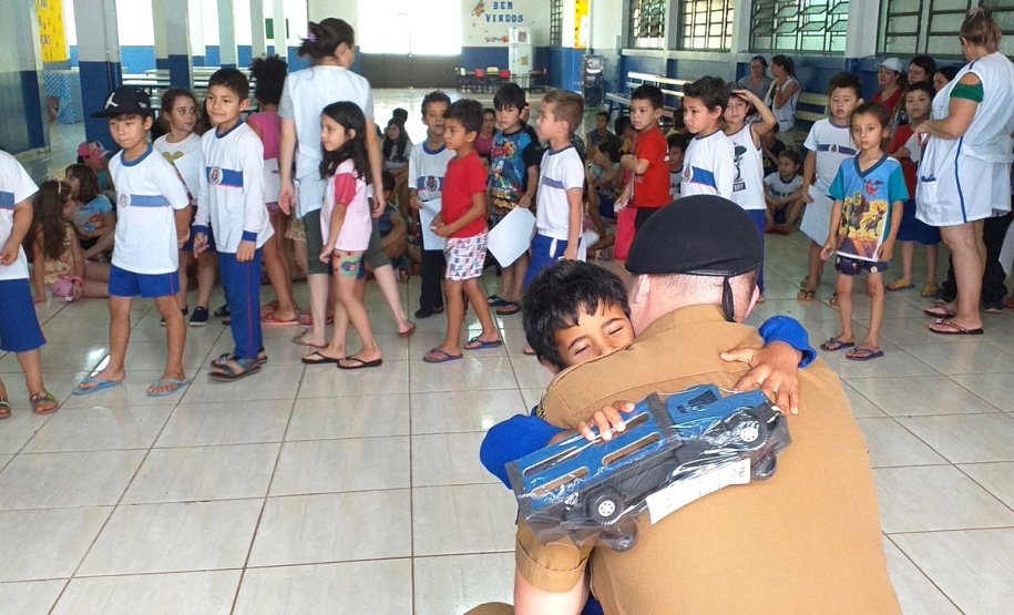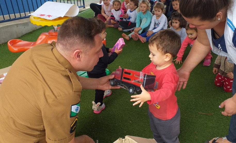 A entrega dos presentes foi feita pelo soldado Rodrigo Borges, que coordena o “Policial junto da Comunidade”. Em suas visitas, ele explicou às crianças sobre a atividade policial, o convívio em sociedade, o respeito ao próximo e a importância da dedicação aos estudos. “Nós policiais militares somos seus amigos e estamos aqui para ajudar sempre no que for necessário, contem sempre conosco”, destacou durante as conversas com os pequeninos.
