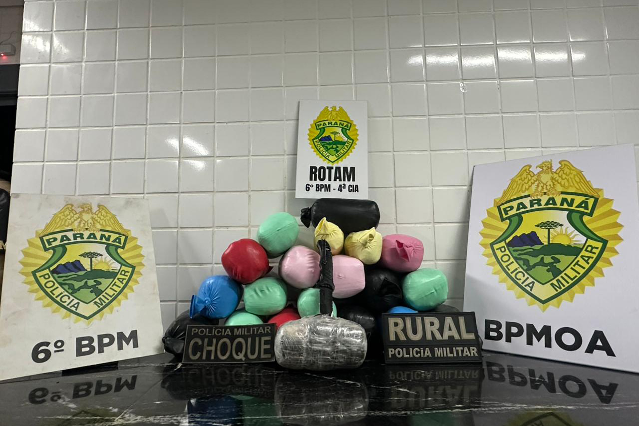 A Polícia Militar do Paraná (PMPR), em uma operação conjunta realizada pelo Batalhão de Polícia Militar de Operações Aéreas (BPMOA) e o 6º Batalhão (BPM), prendeu três pessoas e apreendeu 23,5 quilos de haxixe na noite desta quarta-feira (4). A ocorrência foi registrada na rodovia BR-277, no trecho entre Santa Tereza do Oeste e Cascavel, na Região Oeste.