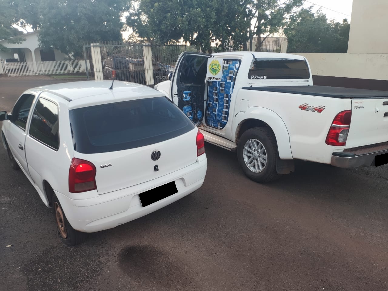Ao fim da ocorrência, os dois foram levados à Delegacia para a tomada de medidas cabíveis ao caso, assim como os cigarros e o veículo utilizado para o contrabando.
