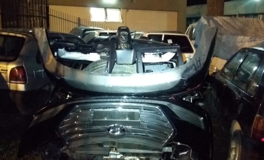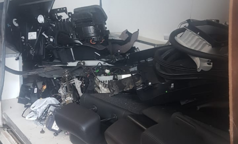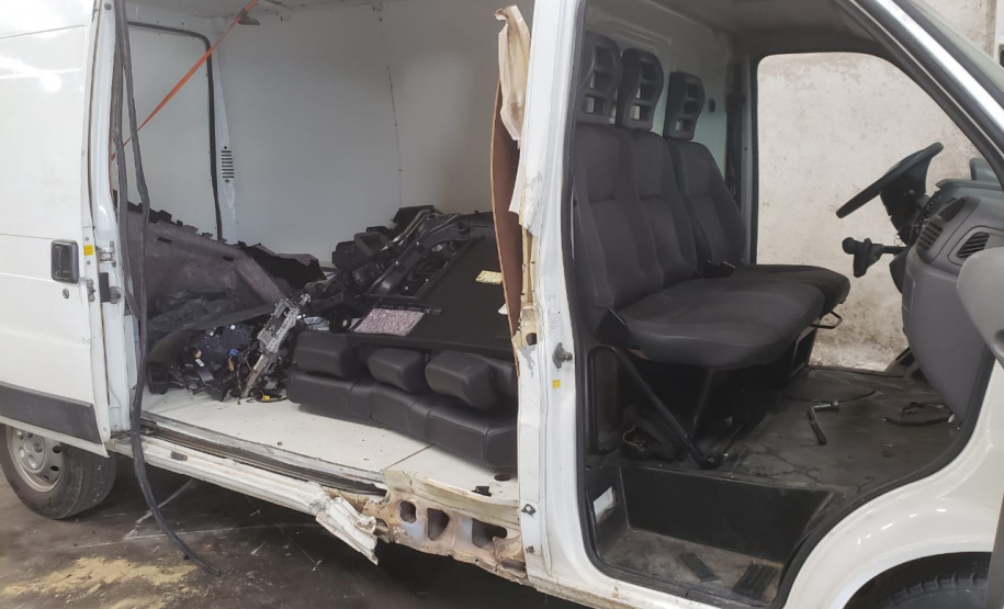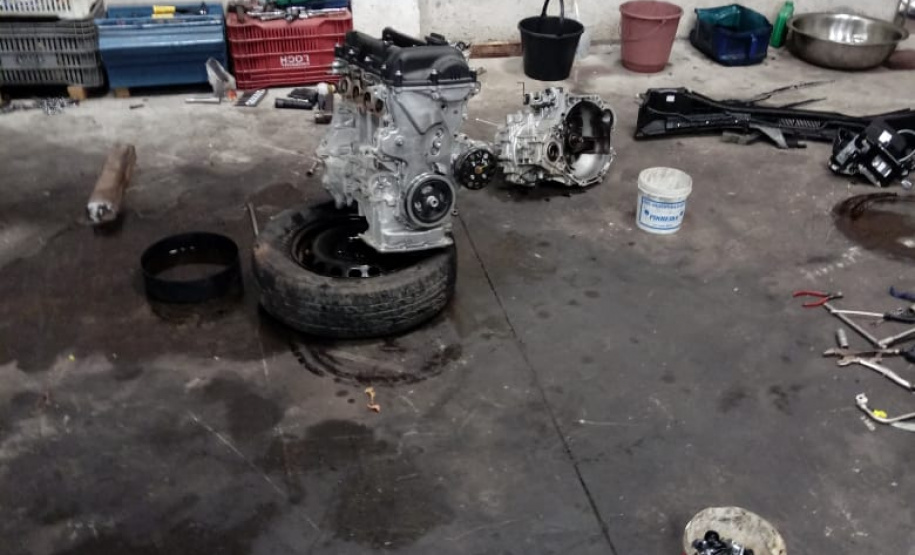 No local foi encontrado um GM/Cruze que estava com alerta de roubo do dia 15/12/2018, já o HB 20, que também estava com alerta de roubo, estava suspenso em uma empilhadeira faltando desmontar o taque do combustível. Em uma gaveta foram localizadas quatro munições, de calibre .380, e no gabinete da impressora os policiais militares encontraram a pistola, do mesmo calibre, carregada com 16 munições, além de 22 pares de placas adulteradas.