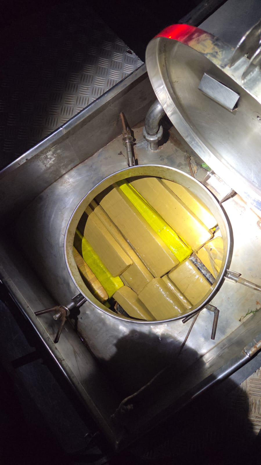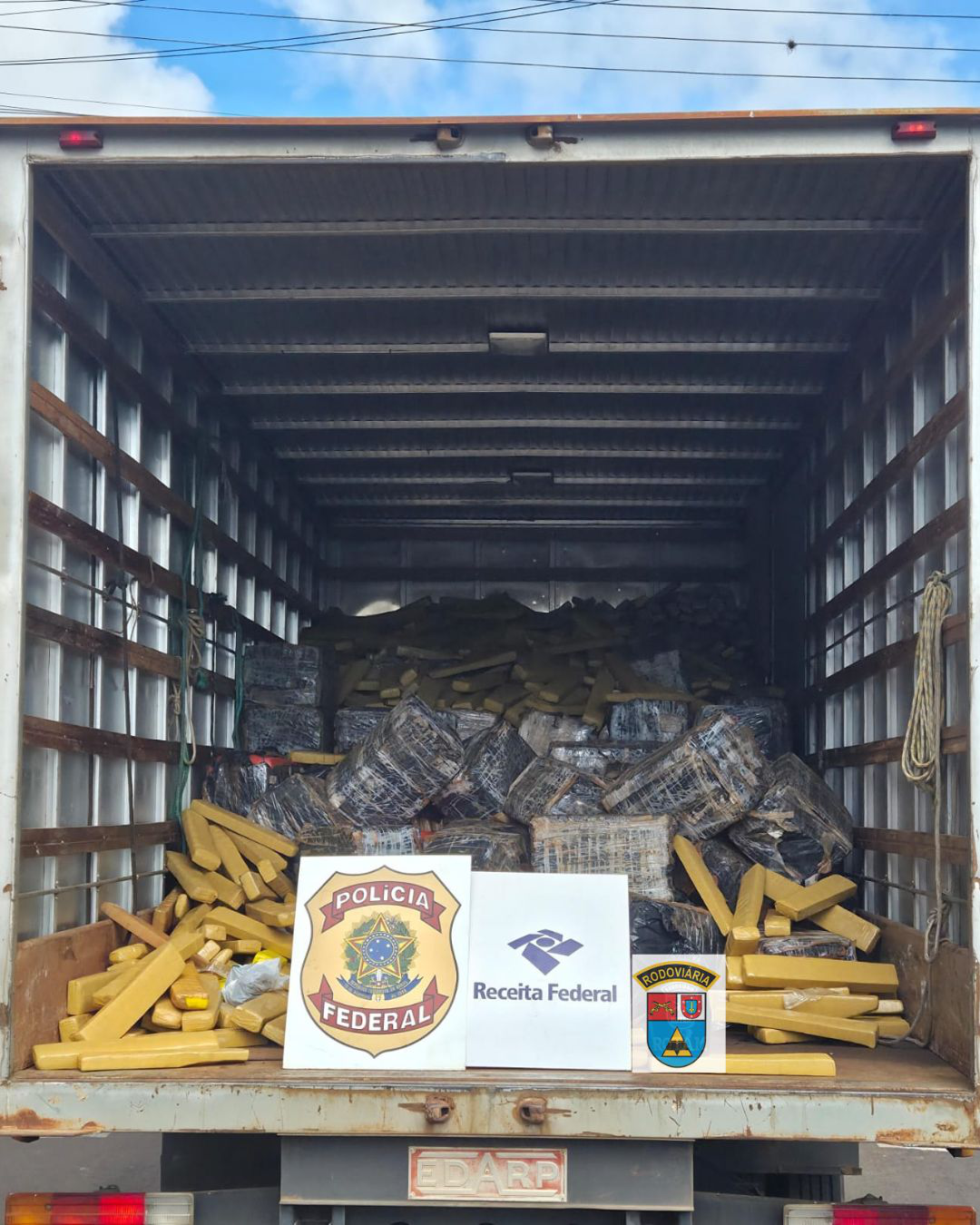 Apesar das buscas realizadas na região, o condutor não foi localizado. Durante a vistoria no veículo, as equipes encontraram a droga escondida em compartimentos da carga.
