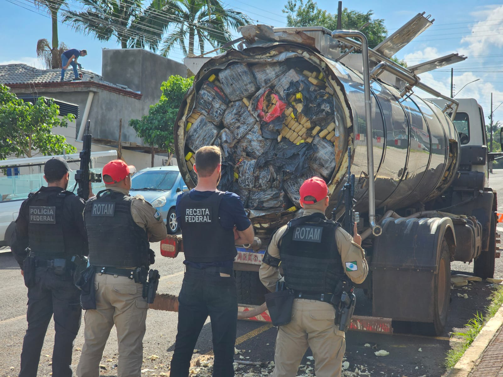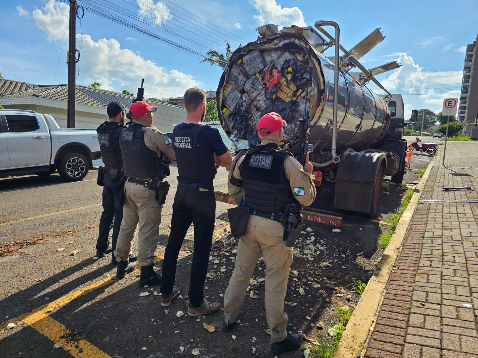De acordo com o 1º tenente Adam, a equipe realizava patrulhamento de rotina por volta das 23h, quando abordou um caminhão que transportava uma carga de leite. “O motorista desobedeceu à ordem de parada e iniciou fuga. Após cerca de dois quilômetros de acompanhamento tático pelas forças de segurança, ele abandonou o caminhão e fugiu para uma área de mata às margens da rodovia”, explicou.