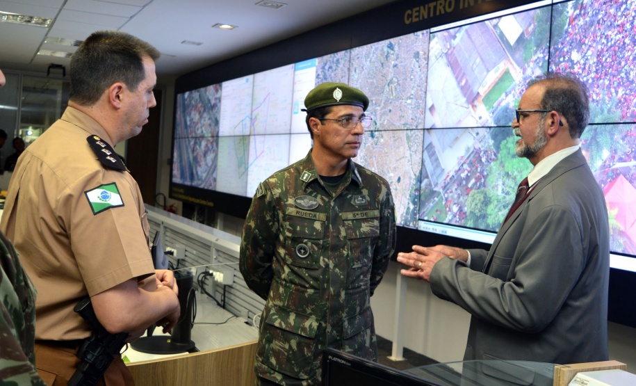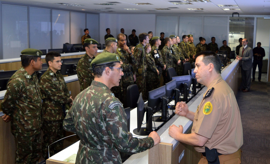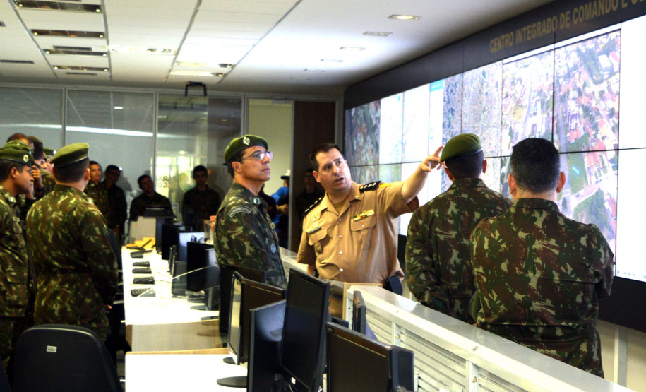 Durante o encontro, foram debatidas políticas de integração entre as forças de segurança e de inteligência do Paraná e o Exército Brasileiro. Os representantes do Exército conheceram a Sala de Gestão de Crises, o Centro de Inteligência e o Centro Integrado de Comando e Controle Regional. No local também estão as equipes responsáveis pelo monitoramento de tornozeleiras eletrônicas em todo o Paraná e a central do disque-denúncia 181.