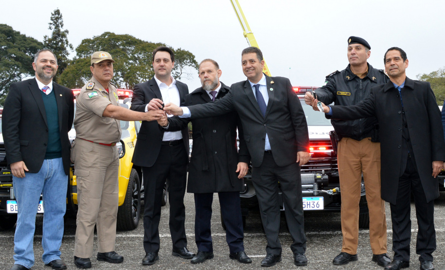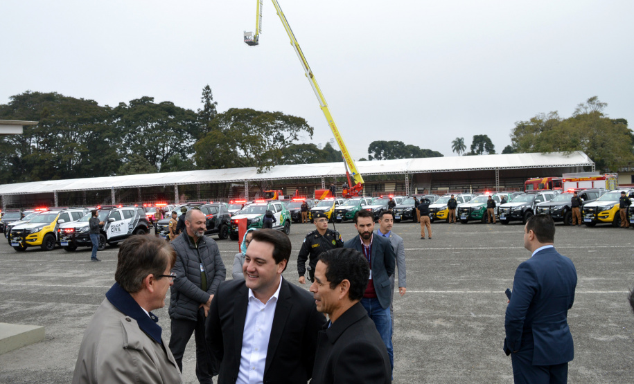 O Governador do Paraná, Carlos Massa Ratinho Junior, e o Secretário de Estado de Segurança Pública, coronel Romulo Marinho Soares, entregaram, na manhã desta quarta-feira (10/07), as chaves de 102 novas viaturas Trailblazers para as polícias Civil e Militar. “Esse é o início daquilo que vamos investir nas nossas polícias, uma demonstração de que estamos no caminho certo”, afirmou o Governador. O evento aconteceu na Academia Policial Militar do Guatupê (APMG), em São José dos Pinhais, na Região Metropolitana de Curitiba (RMC).