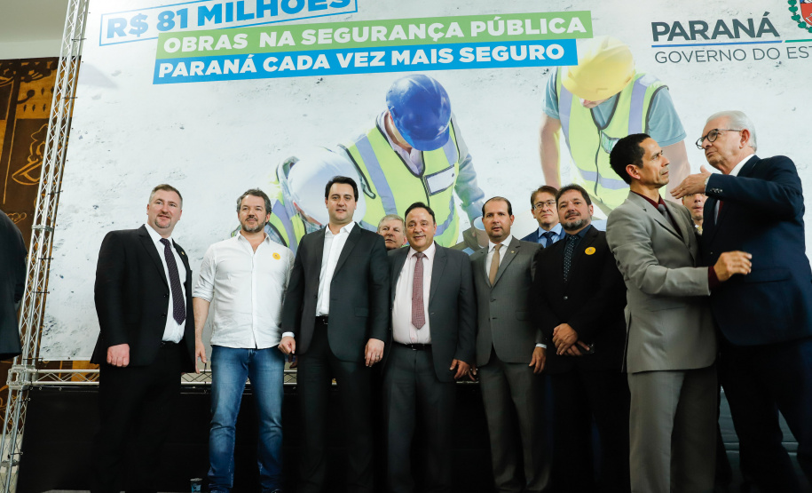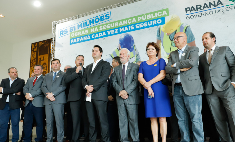 PRESENÇAS – Participaram da solenidade o vice-governador Darci Piana; o chefe da Casa Civil, Guto Silva; o secretário de Infraestrutura e Logística, Sandro Alex; o comandante-geral do Corpo de Bombeiros, coronel Samuel Prestes; os deputados estaduais Hussein Bakri (líder do Governo), Luiz Cláudio Romanelli, Delegado Fernando, Nelson Justus, Delegado Jacovós, Marcel Micheletto, Emerson Bacil, Douglas Fabrício, Cobra Repórter, Élio Rusch e Jonas Guimarães; além de prefeitos, vereadores, delegados e diretores de unidades penitenciárias.