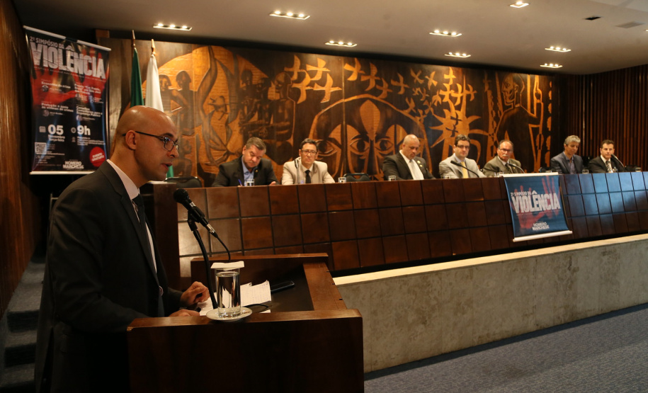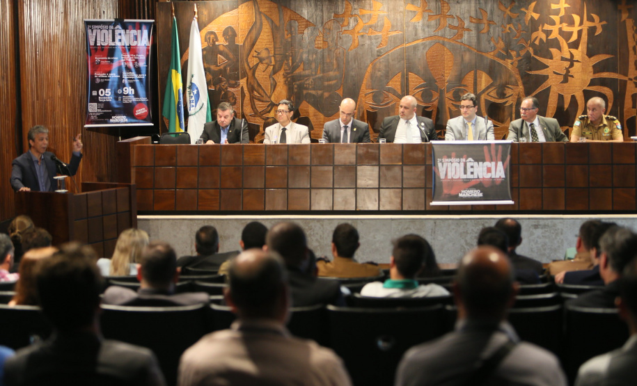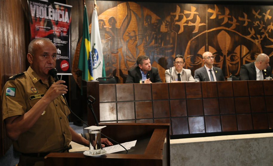 O Coordenador operacional da Força-Tarefa do projeto Em Frente Brasil e Comandante do 6º Comando Regional da PM (6º CRPM), coronel Nivaldo Marcelos da Silva, e o delegado adjunto da Delegacia de Polícia Civil de São José dos Pinhais e ponto-focal de Polícia Judiciária do projeto, Michel Carvalho, participaram do 2.º Simpósio da Violência – Desafios e Soluções para a Segurança Pública do Paraná, nesta terça-feira (05/11) na Assembléia Legislativa do Paraná (ALEP).