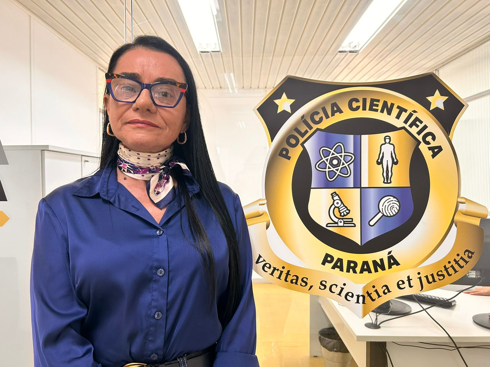 VIDA DEDICADA À CIÊNCIA - Entre as histórias que ajudam a construir a identidade da PCIPR está a da perita oficial criminal Nadir de Oliveira Vargas, que soma 31 anos de atuação na instituição. Nomeada em 1994, quando a perícia ainda integrava a estrutura da Polícia Civil, iniciou sua trajetória na Seção de Documentoscopia e Grafotecnia — setor ao qual permanece vinculada até hoje, atualmente como chefe da Seção.
