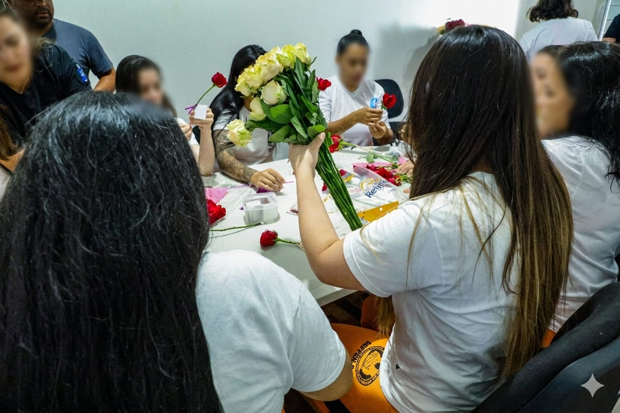 Mulheres privadas de liberdade preparam rosas que serão entregues no Dia Internacional da Mulher 07/03/2026 - 16:56