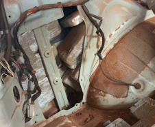 Policiais militares do Batalhão de Polícia de Fronteira (BPFron), durante a Operação Hórus Sul, apreenderam 200 quilos de maconha que estava no fundo falso de um veículo. A ação policial aconteceu na tarde de quarta-feira (07/08) na Ponte Internacional da Amizade em Foz do Iguaçu, no Oeste do estado. Um homem de 35 anos foi preso.