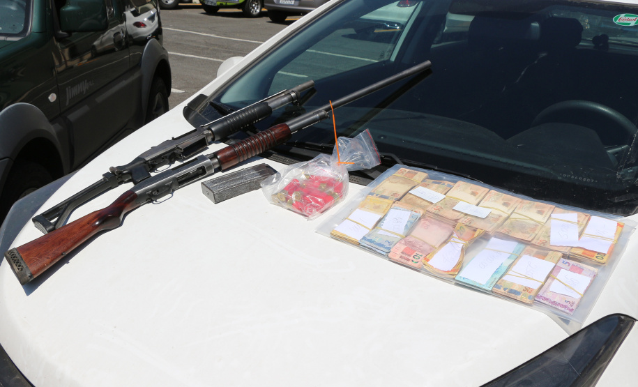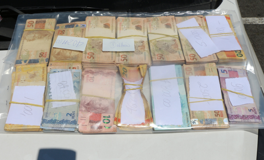 No carro em que estavam foi localizado um malote, com a identificação do banco roubado, com mais de R$ 40 mil em dinheiro. Todo o material, juntamente com os presos, foram levados para o Centro de Operações Policiais Especiais (COPE).